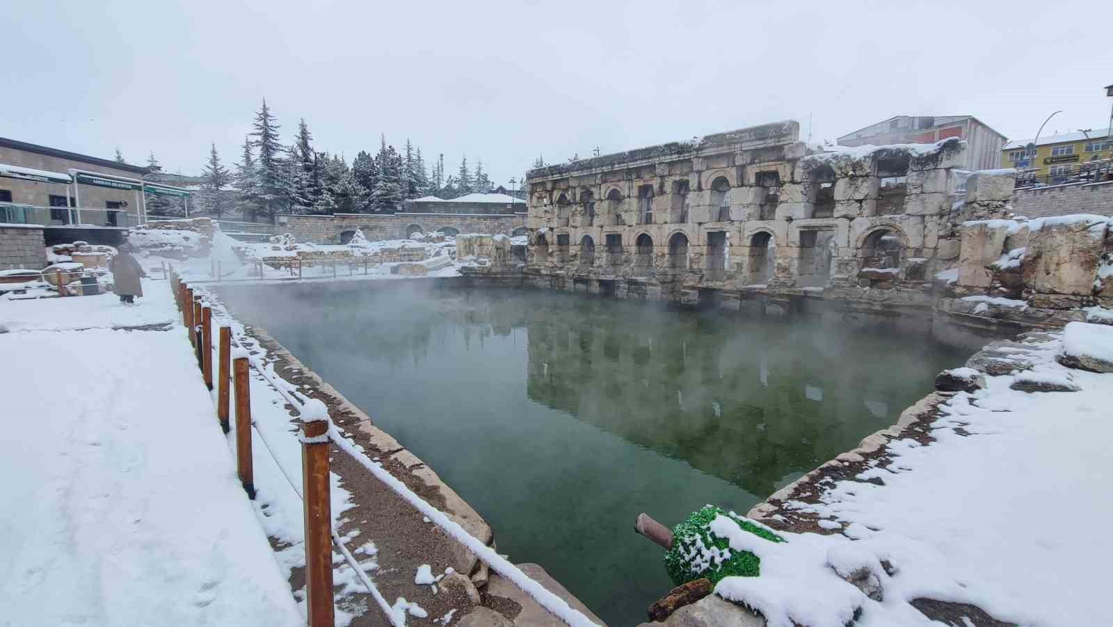 UNESCO Dünya Mirası Geçici Listesi’nde yer alan tarihi yapı, kış mevsiminde de ziyaretçilerin ilgisini çekiyor. Kar altında sıcak sudan yükselen buharla masalsı görüntüler özellikle fotoğraf tutkunlarının ilgisini çekiyor.