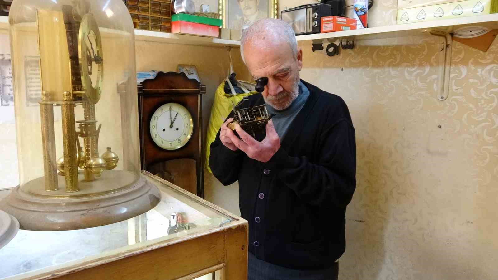 Kilis’te 41 yıldır usta olarak çalışan Ahmet Çınaroğlu, 54 yıldır sürdürdüğü saat tamirciliğinde özellikle antika saatleri onararak mesleğini yaşatmaya devam ediyor.