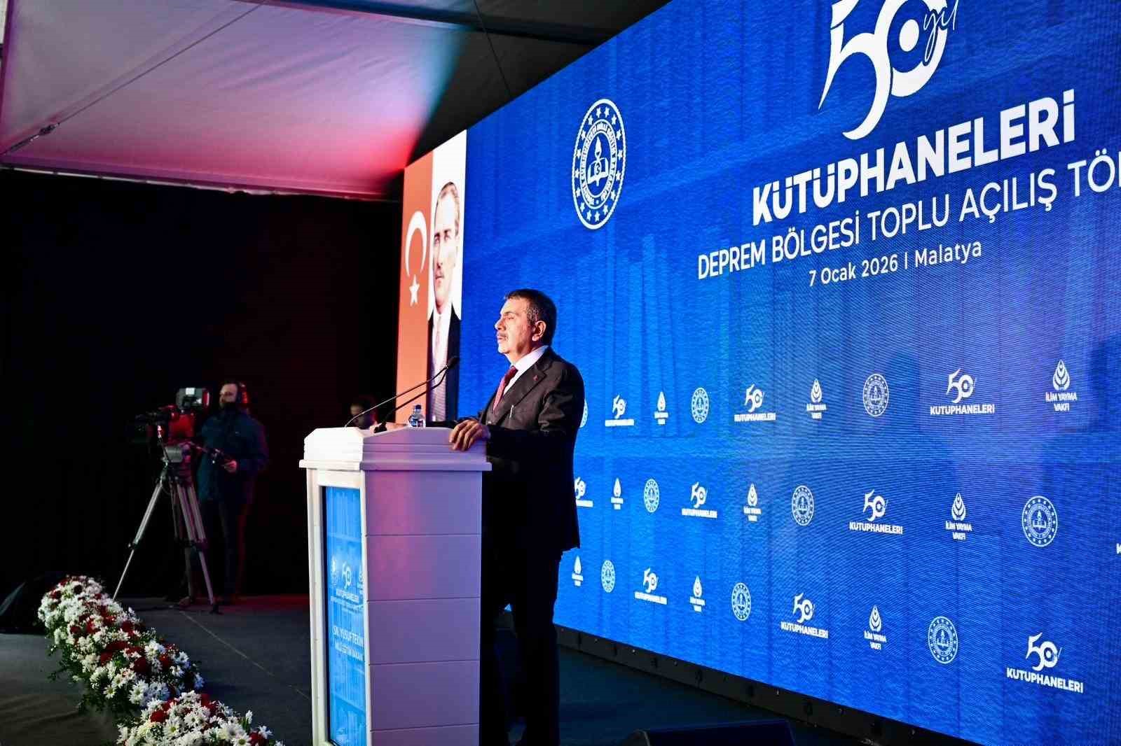 Malatya’da, Milli Eğitim Bakanı Yusuf Tekin’in katılımıyla 50. Yıl Kütüphaneleri deprem bölgesi toplu açılış töreni gerçekleştirildi.
