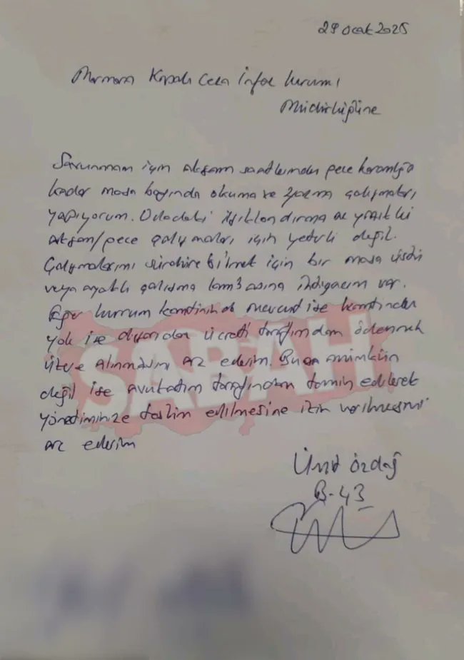 Zafer Partisi Genel Başkanı Ümit Özdağ, sosyal medya hesabından yaptığı açıklamada, cezaevinde kaldığı tek kişilik hücrede çalışma koşullarına ilişkin yaptığı bir dilekçenin fotokopisinin izinsiz şekilde basına sızdırıldığını belirtti. Özdağ, söz konusu dilekçenin bir haberle birlikte 29 Ocak 2025 tarihinde Sabah Gazetesi’nin internet sitesinde yayımlandığını ifade etti.