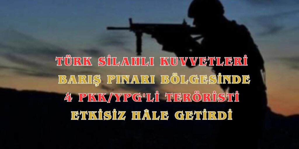 Milli Savunma Bakanlığı, Türk Silahlı Kuvvetleri’nin, Suriye’nin kuzeyindeki Barış Pınarı bölgesinde huzur ve güvenliği bozmak amacıyla taciz ateşi açan 4 PKK/YPG’li teröristi etkisiz hâle getirdiğini duyurdu.