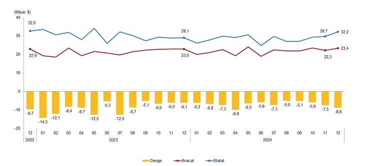 Dış ticaret haddi, 2024 yılı Aralık ayında 85,0 olarak gerçekleşti. 2023 Aralık ayında ise bu oran 84,8 idi. Bu artış, Türkiye’nin ihracatının ithalatı karşılama kapasitesinin arttığını ve dış ticaret dengesinin güçlendiğini gösteriyor.