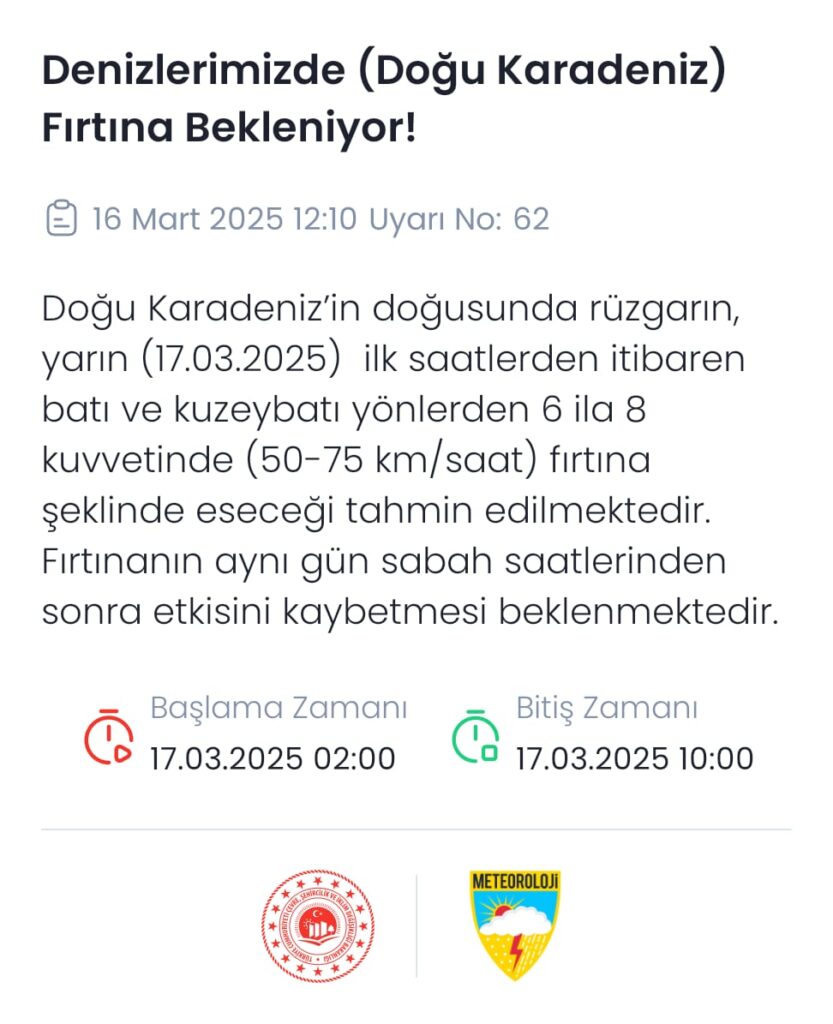 🟢 Rüzgar Hızı: 50-70 km/saat, Doğu Karadeniz’in yükseklerinde 80-90 km/saat