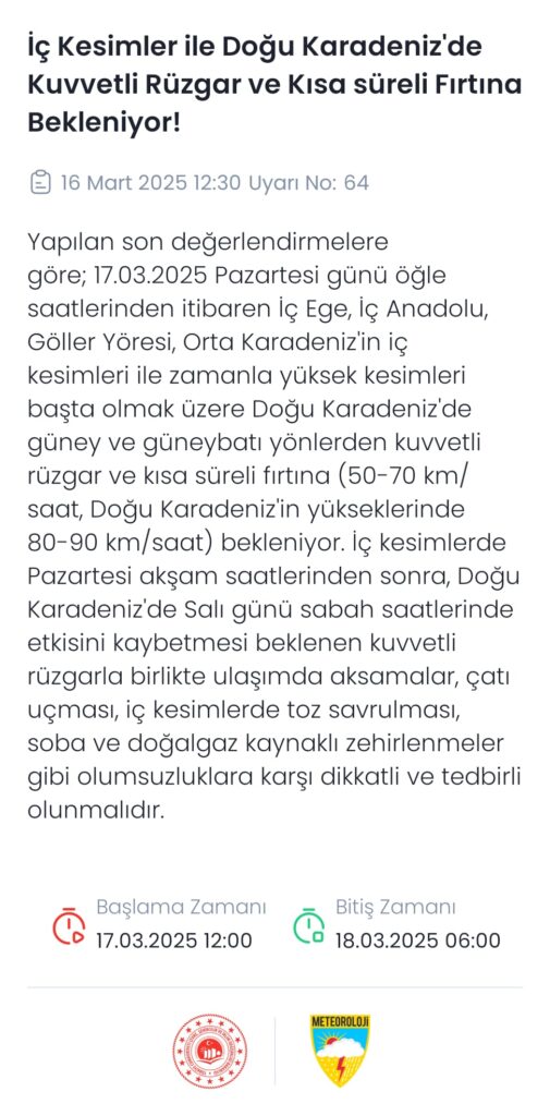 📢 Yetkililer, vatandaşları dikkatli ve tedbirli olmaları konusunda uyardı! Özellikle iç ve doğu bölgelerde don olaylarına, kuzeyde kuvvetli rüzgarlara ve Karadeniz’de fırtınaya karşı dikkatli olunması gerekiyor.