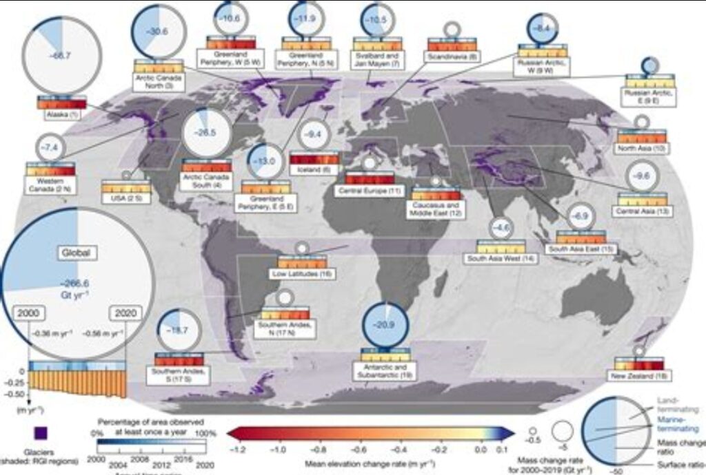 Bilim insanları, 1975 yılından bu yana yaklaşık 9.000 gigaton buzun eridiğini ve bu kaybın 25 metre kalınlığında, Almanya büyüklüğünde bir buz tabakasına eşdeğer olduğunu belirtiyor. Bu hızlı erime, deniz seviyesinin yükselmesine neden olarak kıyı bölgelerinde sel ve taşkın riskini artırıyor.