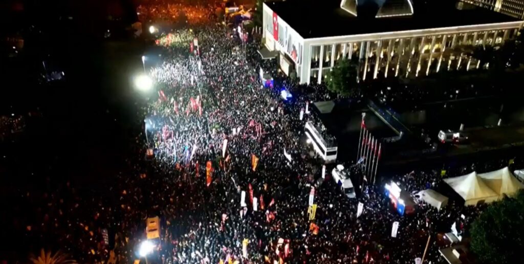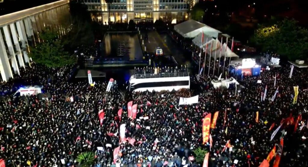 İstanbul Büyükşehir Belediye Başkanı Ekrem İmamoğlu’nun gözaltına alınmasına yönelik tepkiler dinmiyor. Üçüncü gününe giren Saraçhane eylemlerine yüz binlerce kişi katılırken, CHP Genel Başkanı Özgür Özel, saat 20.30’da coşkulu kalabalığa hitap etti.