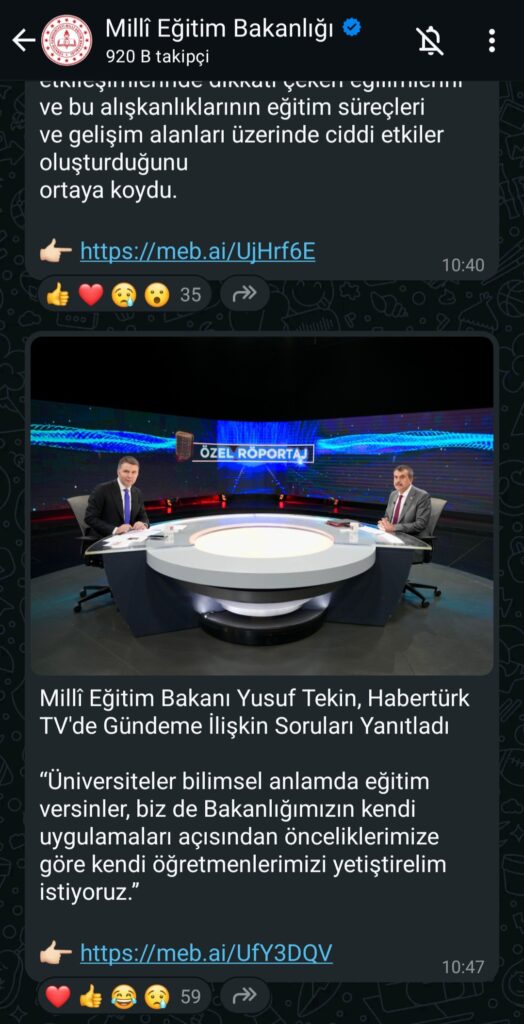 Millî Eğitim Bakanı Yusuf Tekin, Habertürk TV’de gündeme ilişkin soruları yanıtlarken yaptığı açıklamalarla dikkat çekti. Üniversitelerin bilimsel eğitime odaklanması gerektiğini vurgulayan Tekin, öğretmen yetiştirme konusunda Bakanlığın kendi önceliklerine göre hareket etmesi gerektiğini belirtti.