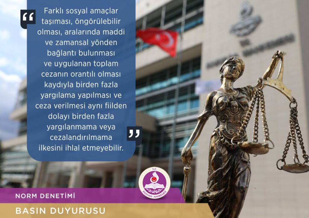 Anayasa Mahkemesi, disiplin hapsinin ceza niteliğinde olduğunu ancak aynı fiilden dolayı birden fazla yargılama yapılmasının, ceza yargılaması ve disiplin hapsi süreçlerinin ayrı sosyal amaçlara hizmet etmesi nedeniyle Anayasa’ya aykırı olmadığını belirtti. Ayrıca, cezaların orantılı olduğu ve birbiriyle bağlantılı şekilde uygulandığı tespit edilerek iptal talebinin reddine karar verildi.