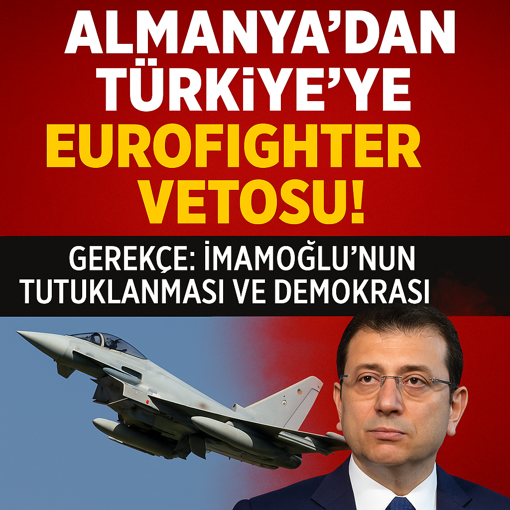Almanya, Türkiye’ye Eurofighter Typhoon savaş uçağı satışını veto etti. Kararın arkasında İBB Başkanı Ekrem İmamoğlu’nun tutuklanması ve Türkiye’de demokrasinin gerilemesi olduğu iddia edildi.