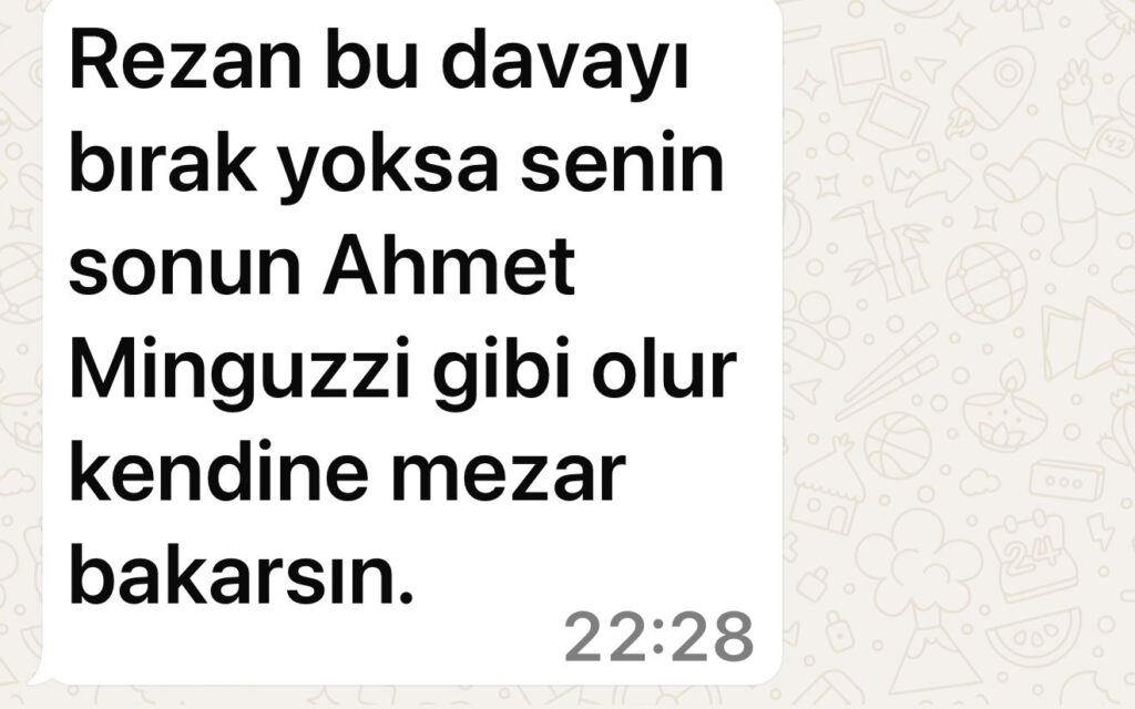 “Rezan bu davayı bırak yoksa senin sonun Ahmet Minguzzi gibi olur, kendine mezar bakarsın.”