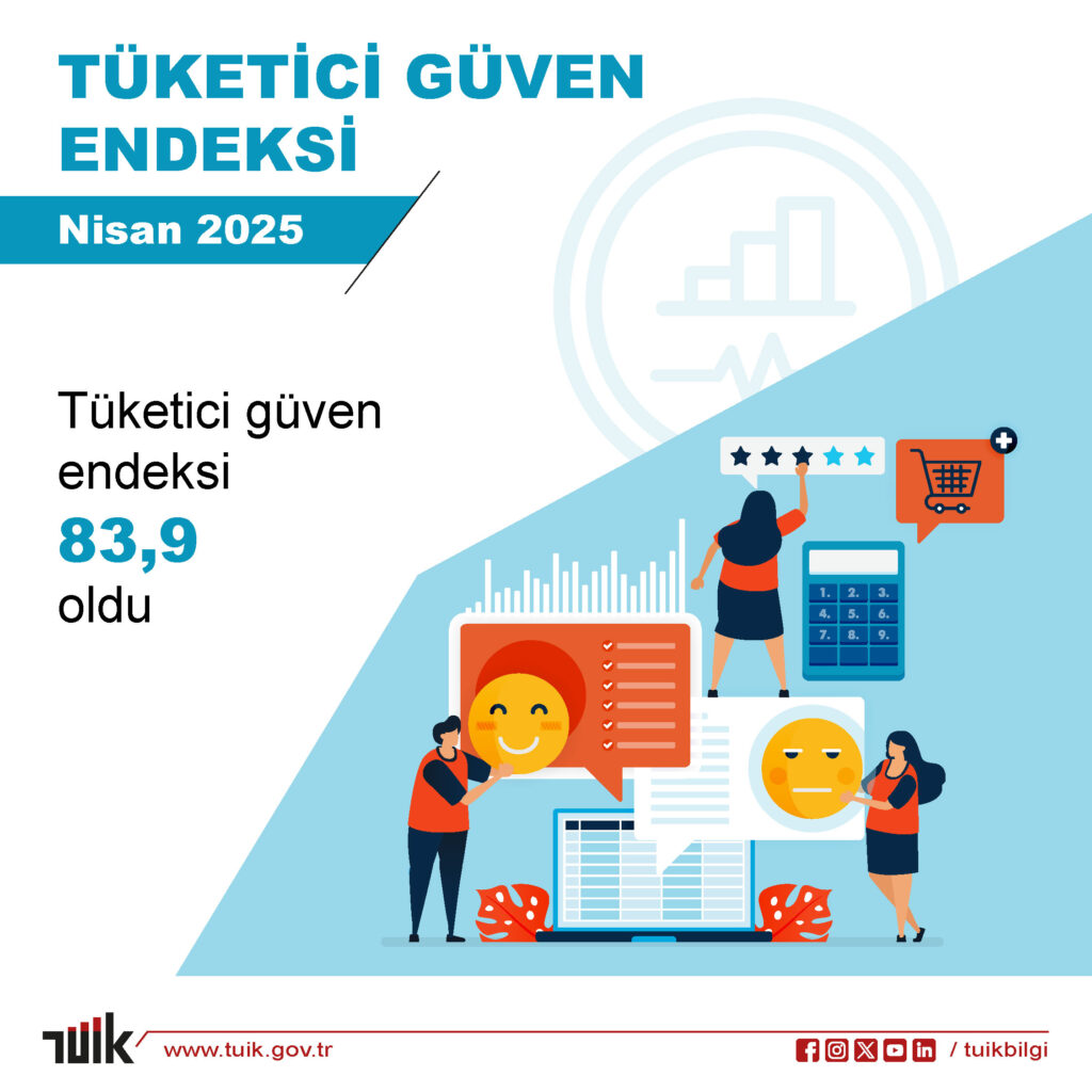 Türkiye İstatistik Kurumu (TÜİK) ve Türkiye Cumhuriyet Merkez Bankası (TCMB) işbirliğiyle yürütülen Tüketici Eğilim Anketi sonuçlarına göre, Tüketici Güven Endeksi Nisan 2025’te bir önceki aya göre %2,3 oranında azalarak 83,9 değerine geriledi. Mart ayında bu değer 85,9 olarak ölçülmüştü.