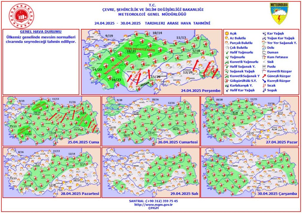 🗓️ 24 – 30 Nisan 2025 tarihleri arasında Türkiye’yi nasıl bir hava bekliyor? Meteoroloji Genel Müdürlüğü’nün son tahminlerine göre işte gün gün hava durumu analizi: