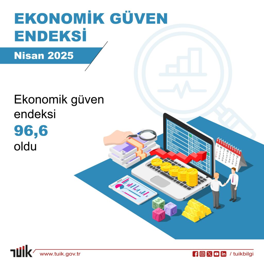 TÜİK verilerine göre ekonomik güven endeksi, Nisan 2025’te bir önceki aya göre %4,2 oranında azalarak 96,6 seviyesine geriledi. Bu düşüş, genel ekonomik duruma ilişkin kötümser beklentilerin arttığını gösteriyor.