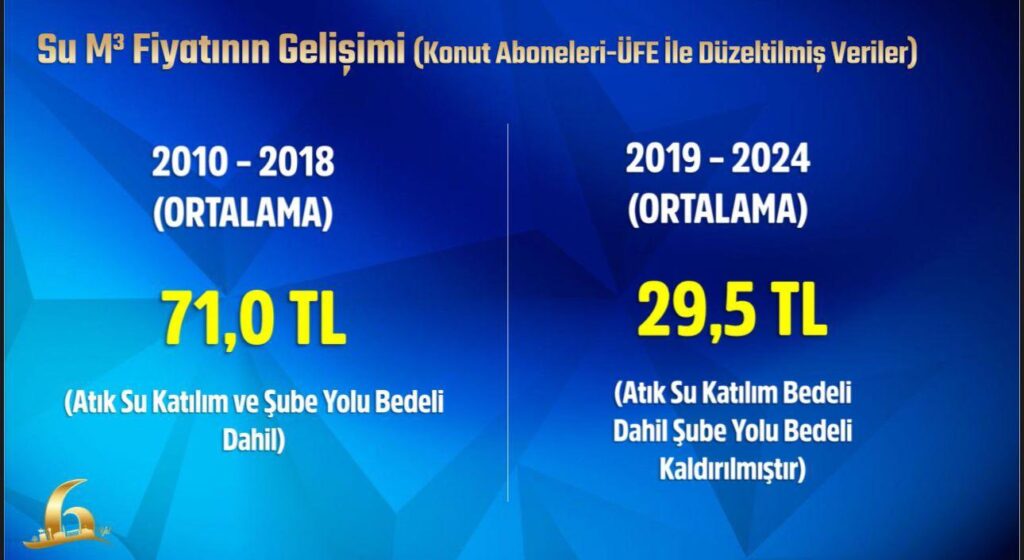 Buna karşılık, 2019-2024 döneminde ise suyun ortalama metreküp fiyatı: