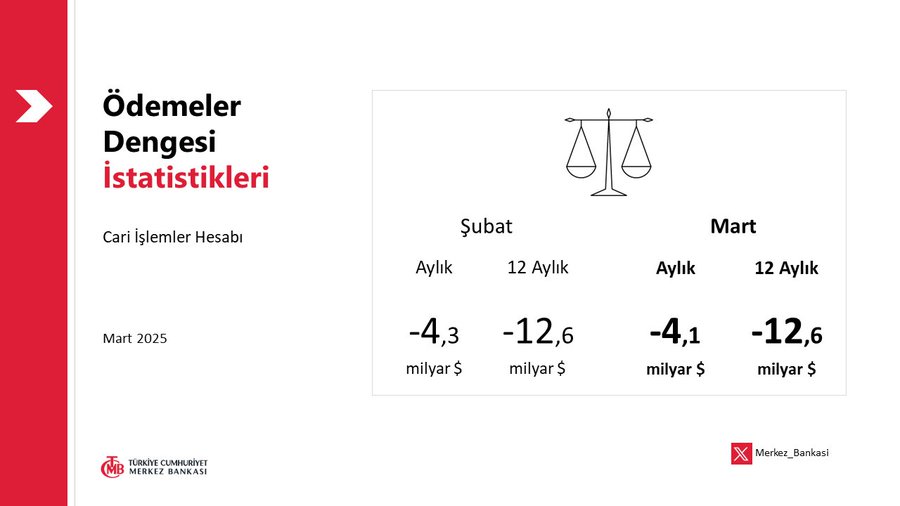 ANKARA, 13 Mayıs 2025 (10:38) – Türkiye Cumhuriyet Merkez Bankası (TCMB) tarafından açıklanan Ödemeler Dengesi İstatistikleri verilerine göre, Türkiye’nin cari açık oranı Mart 2025 itibariyle önemli bir iyileşme göstermiştir. Şubat 2025’te -4,3 milyar dolar seviyesinde olan cari açık, Mart 2025’te -4,1 milyar dolar’a gerileyerek ekonomiye umut verici bir sinyal vermektedir. Ancak, 12 aylık cari açık -12,6 milyar dolar ile sabit kalmaya devam etmektedir. Bu durum, Türkiye’nin ekonomik dengelerini yakından takip eden uzmanlar için dikkat çekici bir gelişme olarak öne çıkmaktadır!