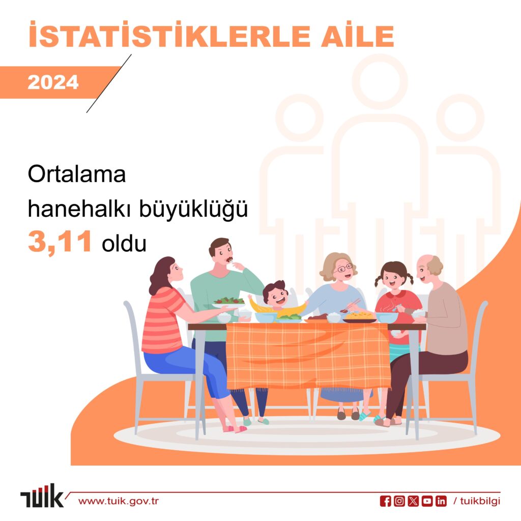 Türkiye İstatistik Kurumu (TÜİK), 2024 yılına ilişkin “İstatistiklerle Aile” araştırmasının sonuçlarını yayımladı. Açıklanan verilere göre, Türkiye’de aile yapısında dikkat çekici dönüşümler yaşanıyor. Ortalama hanehalkı büyüklüğü 2008 yılında 4 kişi iken, 2024’te 3,11 kişiye geriledi. Bu düşüş, bireyselleşme ve değişen toplumsal normların etkisini yansıtırken, tek kişilik hanehalkı oranındaki artış da dikkat çekti.