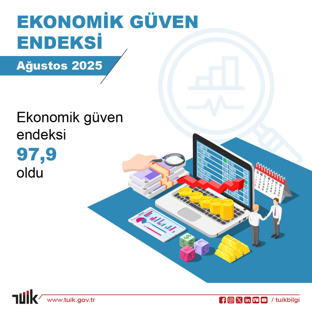 Türkiye İstatistik Kurumu’nun (TÜİK) açıkladığı verilere göre Ekonomik Güven Endeksi Ağustos 2025’te bir önceki aya göre %1,7 artarak 97,9 değerine ulaştı.