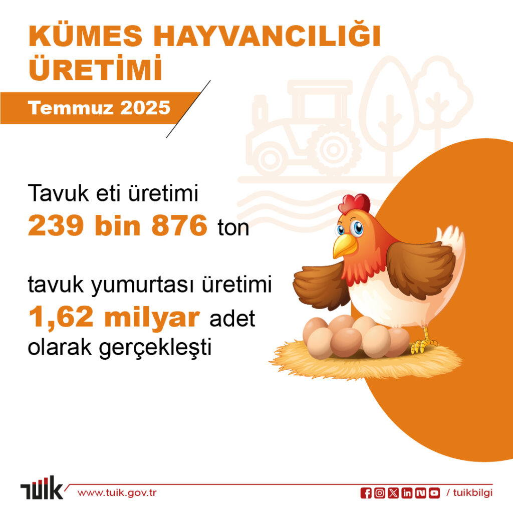 Türkiye İstatistik Kurumu (TÜİK), 12 Eylül 2025’te yayımladığı Kümes Hayvancılığı Üretimi, Temmuz 2025 raporunu açıkladı.