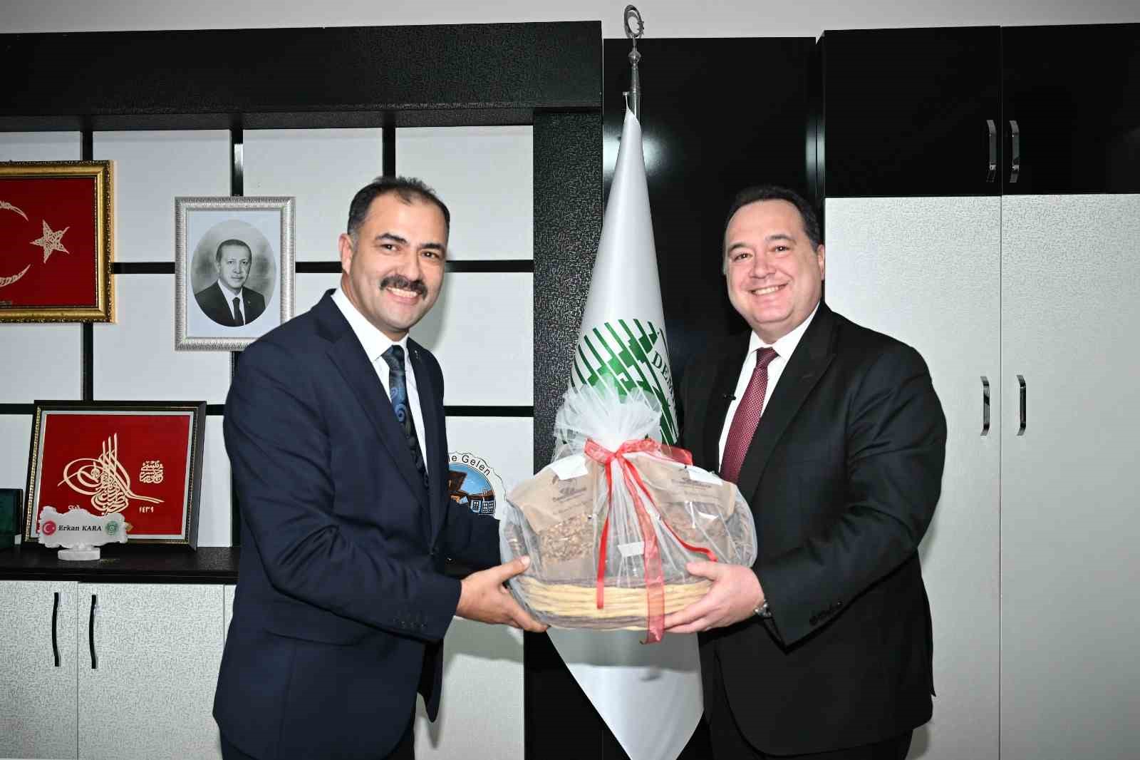 İlçe ziyareti kapsamında Demirci Belediyesine de giden Büyükşehir Belediye Başkanı Besim Dutlulu, Belediye Başkanı Erkan Kara’yı makamında ziyaret etti.