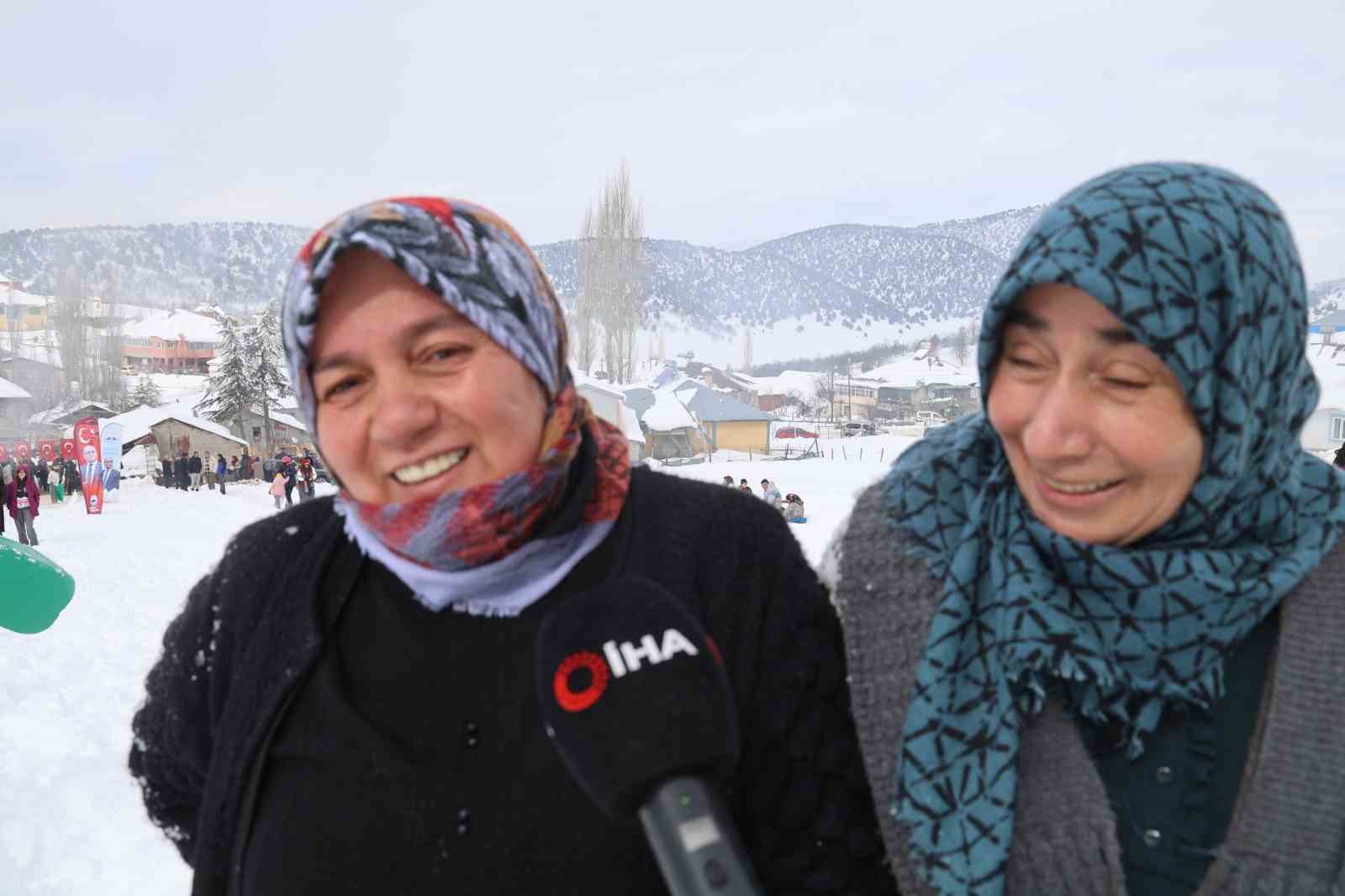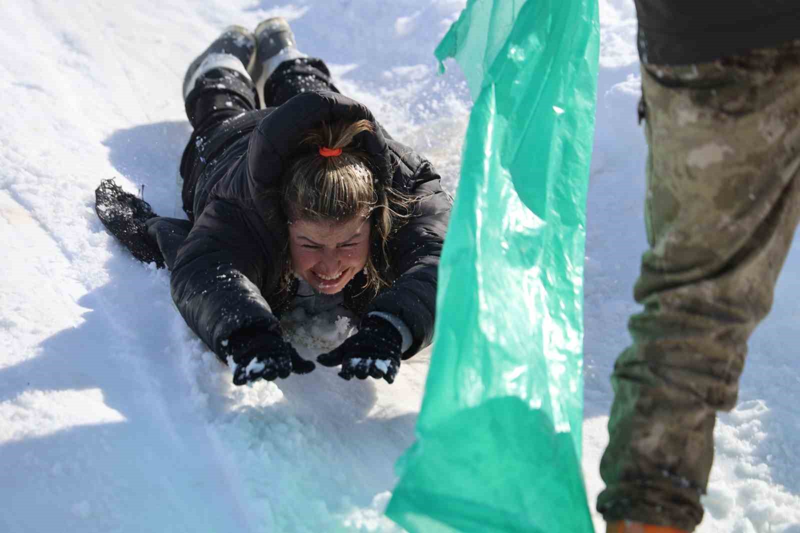 İstanbul’dan festivale katılan Nihal Kahveci ise, “Çocuklar gibi eğleniyoruz. Herkes poşetlerle kayıyor, inanılmaz keyifli. Kızakla bu kadar eğlenemezdik” diye konuştu. Çocuklardan Ecrin Tekin “Çok eğlendik” derken, öğretmen Ömer Çağrı Korkmaz da bidonla kaymanın çok eğlenceli olduğunu söyledi.