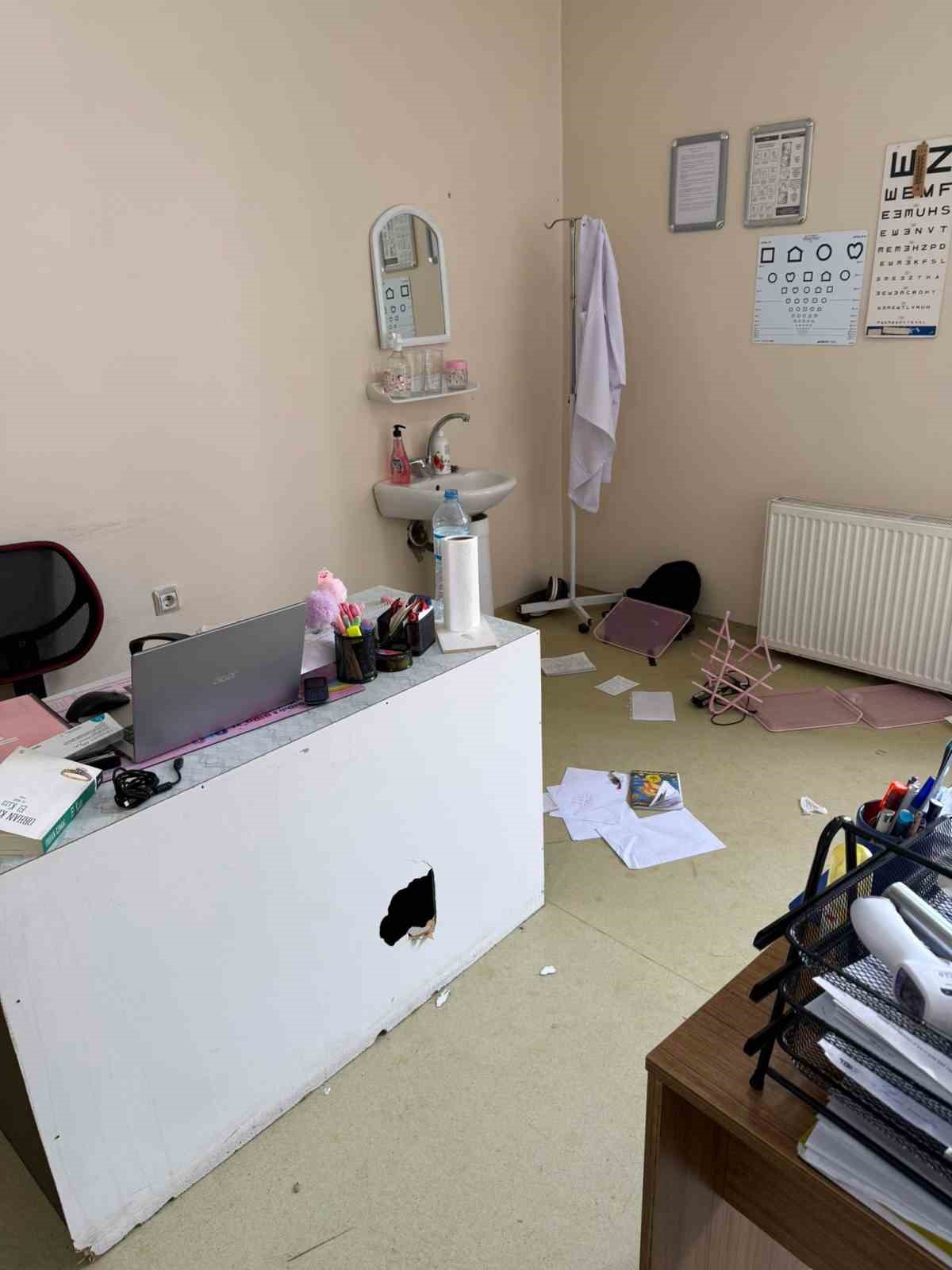 Olay sırasında odada bulunan aile sağlığı çalışanının 112 Acil Çağrı Merkezi’ni arayarak durumu bildirmesi üzerine emniyet ekipleri kısa sürede olay yerine sevk edildi. Fiziksel saldırı sonucu sol gözünde morluk oluşan Dr. S.A.’nın, emniyette ifadesinin alınmasının ardından şüpheli hakkında yakalama kararı çıkarıldığı bildirildi. Polis ekiplerince yakalanan M.A. gözaltına alındı.