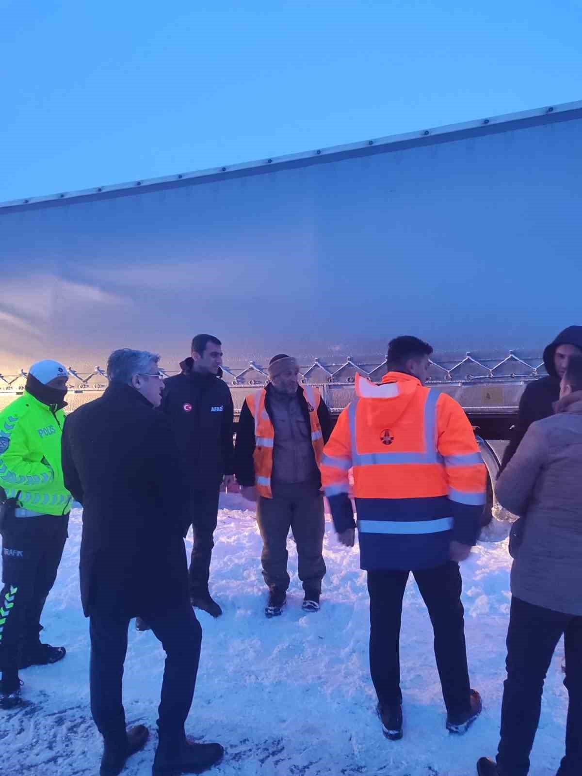 Hamur ilçesinde ise Hamur-Ağrı karayolu üzerinde bir tırın yoğun kar yağışı ve fırtına nedeniyle yolda mahsur kaldığı ihbarı alındı. Sürücüyle yapılan görüşmede herhangi bir tahliye talebinin bulunmadığı öğrenildi. Bunun üzerine AFAD İl Müdürlüğünce 1 şube müdürü, 3 arama ve kurtarma personeli ile 1 araç bölgeye sevk edilirken, Karayolları ve Bölge Trafik ekipleri de çalışmalara dahil edildi. Olayın yakından takip edildiği bildirildi.