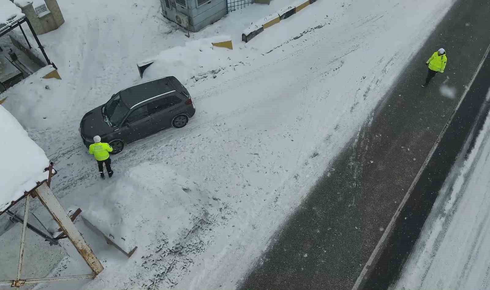 Ağrı İl Emniyet Müdürlüğü ekipleri, kış mevsiminin beraberinde getirdiği olumsuz hava ve yol şartlarına karşı il genelinde trafik denetimleri gerçekleştirdi.