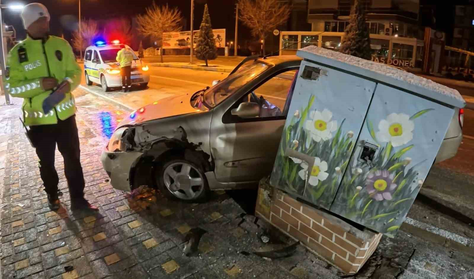 Kaza, Tacin Mahallesi Tacin Caddesi üzerinde yaşandı. Edinilen bilgiye göre, alkol aldıktan sonra 68 HH 870 plakalı aracıyla trafiğe çıkan Mustafa Y. (20), yolun buz tuttuğunu fark etmeyerek virajda frene bastı. Frene basmasıyla genç sürücü direksiyon hakimiyetini kaybedince otomobil kaldırıma çıkıp, elektrik panosuna çarptı. Kazada genç sürücü yara almazken, diğer sürücüler durumu hemen 112 Acil Çağrı Merkezine bildirdi. Kısa sürede kaza mahalline ulaşan sağlık ekipleri sürücüyü kontrolden geçirirken, polis ekiplerinin yaptığı alkol muayenesinde sürücünün 0.94 promil alkollü olduğu tespit edildi. Aday sürücü olduğu belirlenen gencin ehliyeti daimi olarak iptal edilirken, alkollü araç kullanmaktan da 11 bin 629 lira para cezası kesildi.