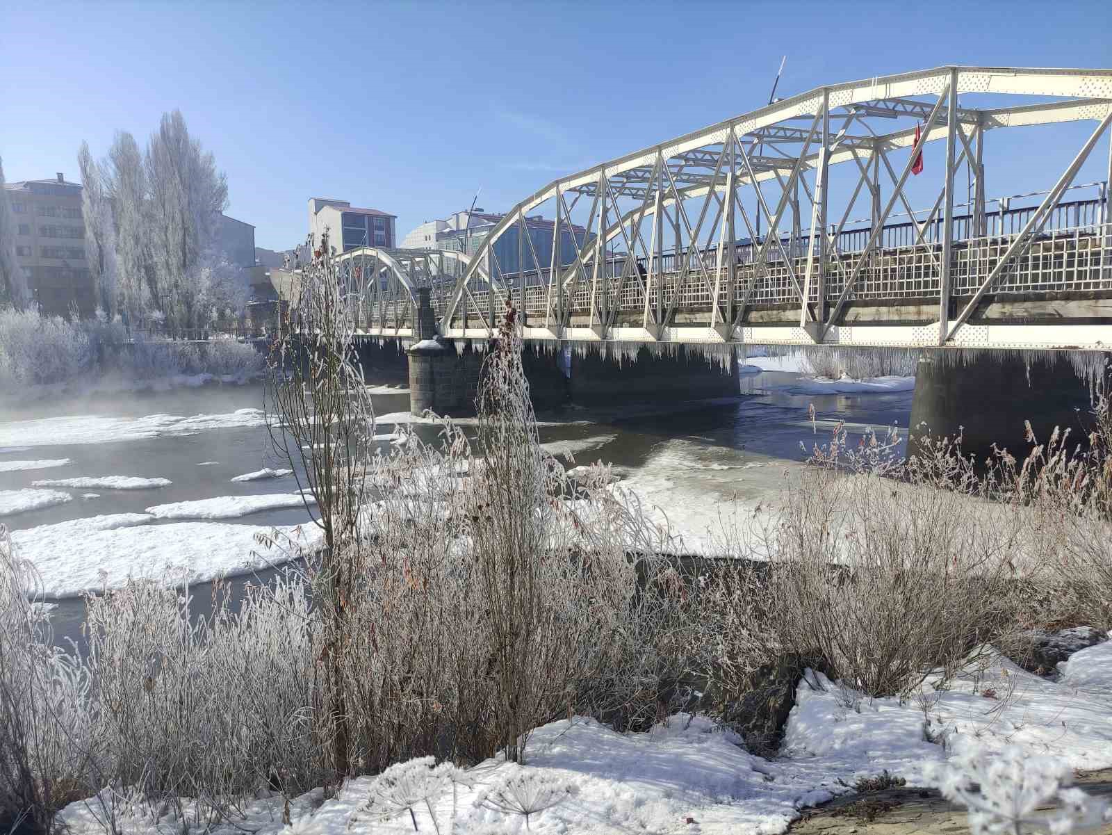 Ardahan’da dondurucu soğuklar hayatı durma noktasına getirdi. Göller, akarsu ve dereler buz tutarken bitkiler ve ağaçlar kırağı tuttu, cadde ve sokaklarda buzlanma oluştu. Vatandaşların dışarıya bıraktığı askılıklar donarken kırağı görsel şölen de oluşturdu.