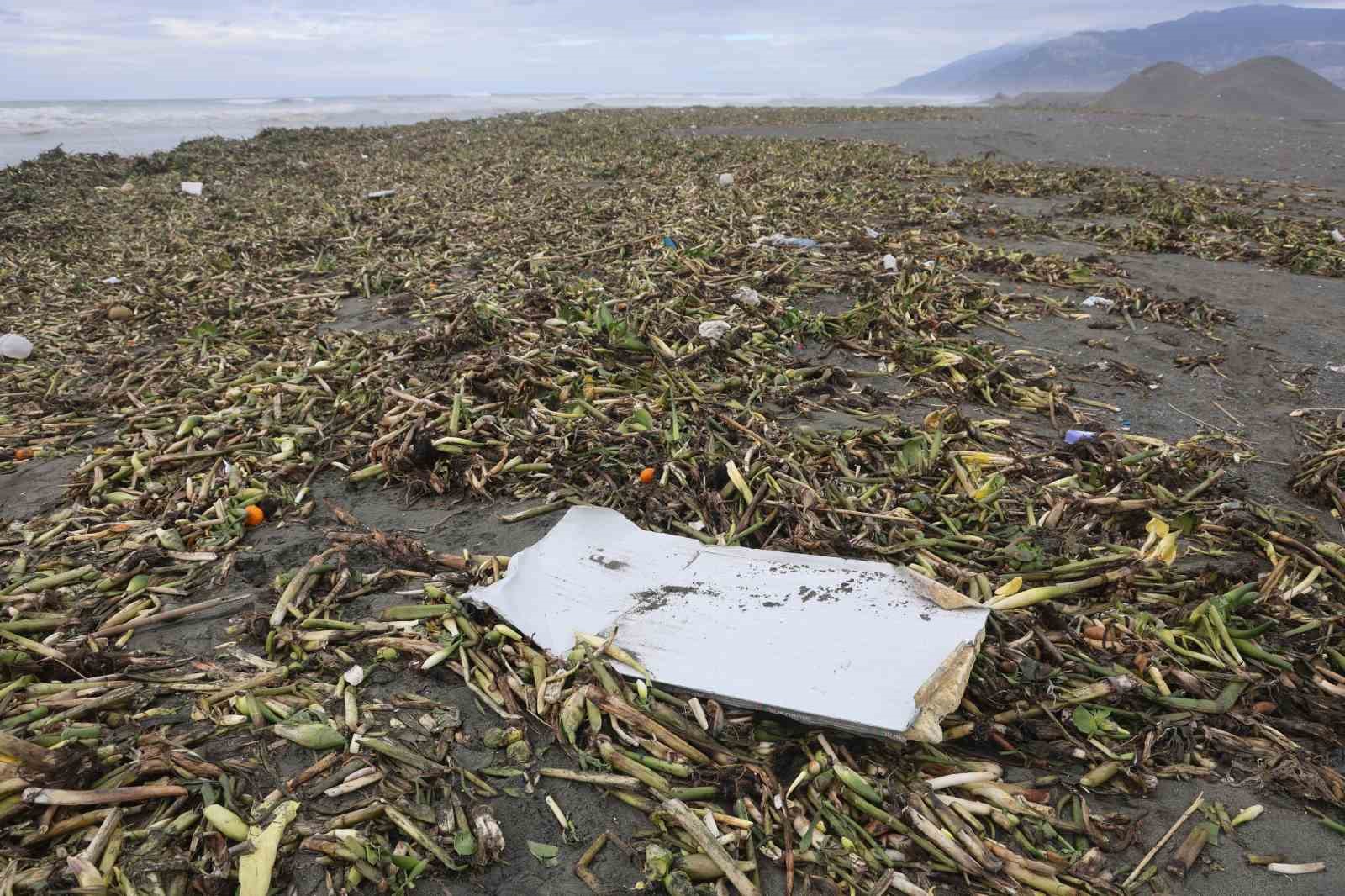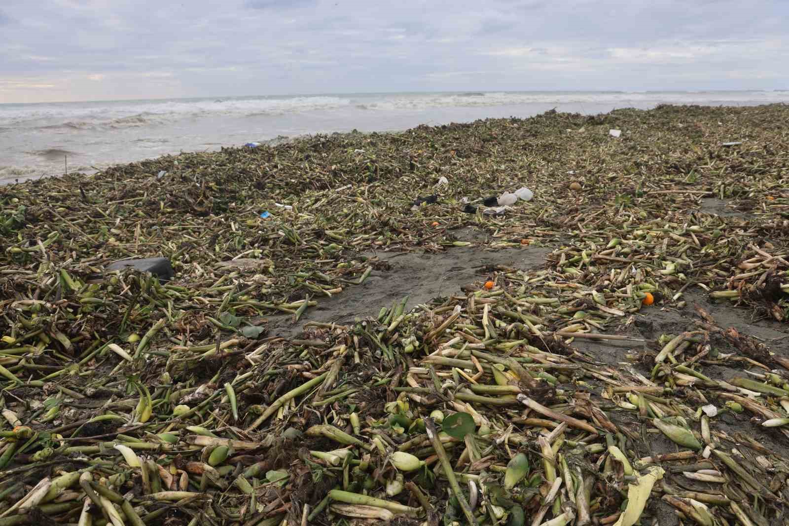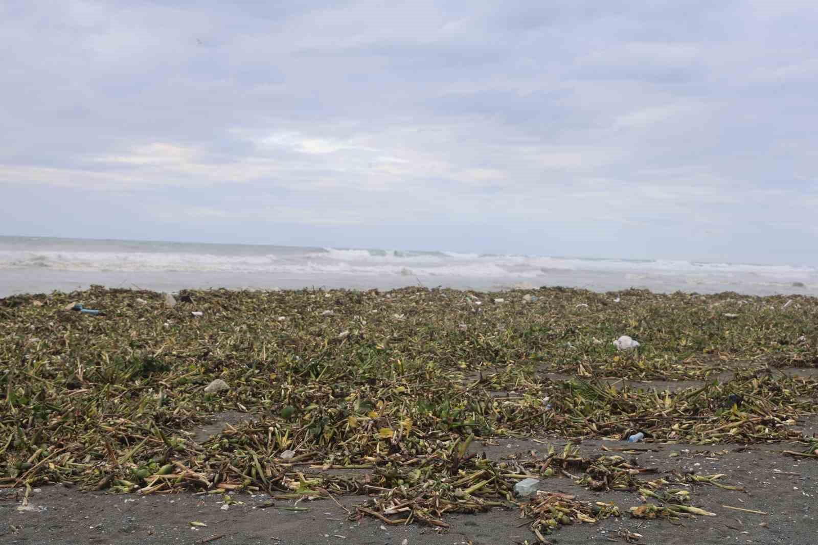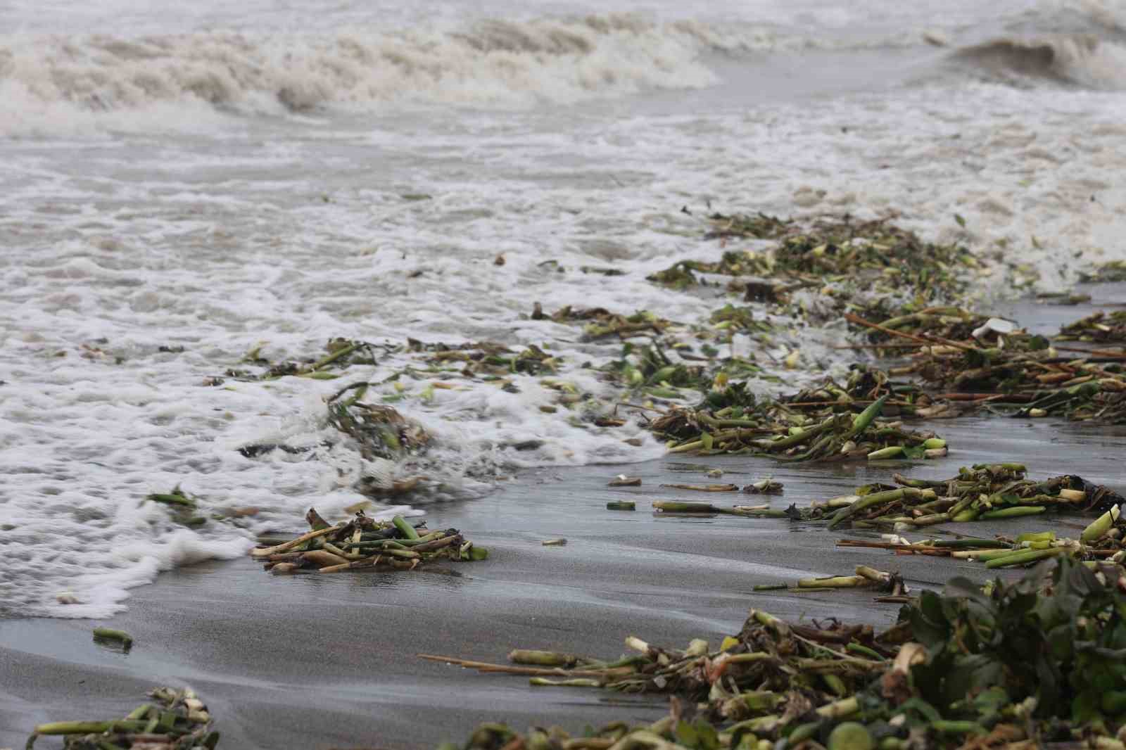 Hatay’da yaz aylarında Asi Nehrin kaplayan istilacı su sümbülleri, kentte etkili olan şiddetli fırtına ve yağışla birlikte Akdeniz’e döküldü. Denizdeki dalgaların kıyıya vurduğu su sümbülleri, Samandağ sahilini yeşile büründü.