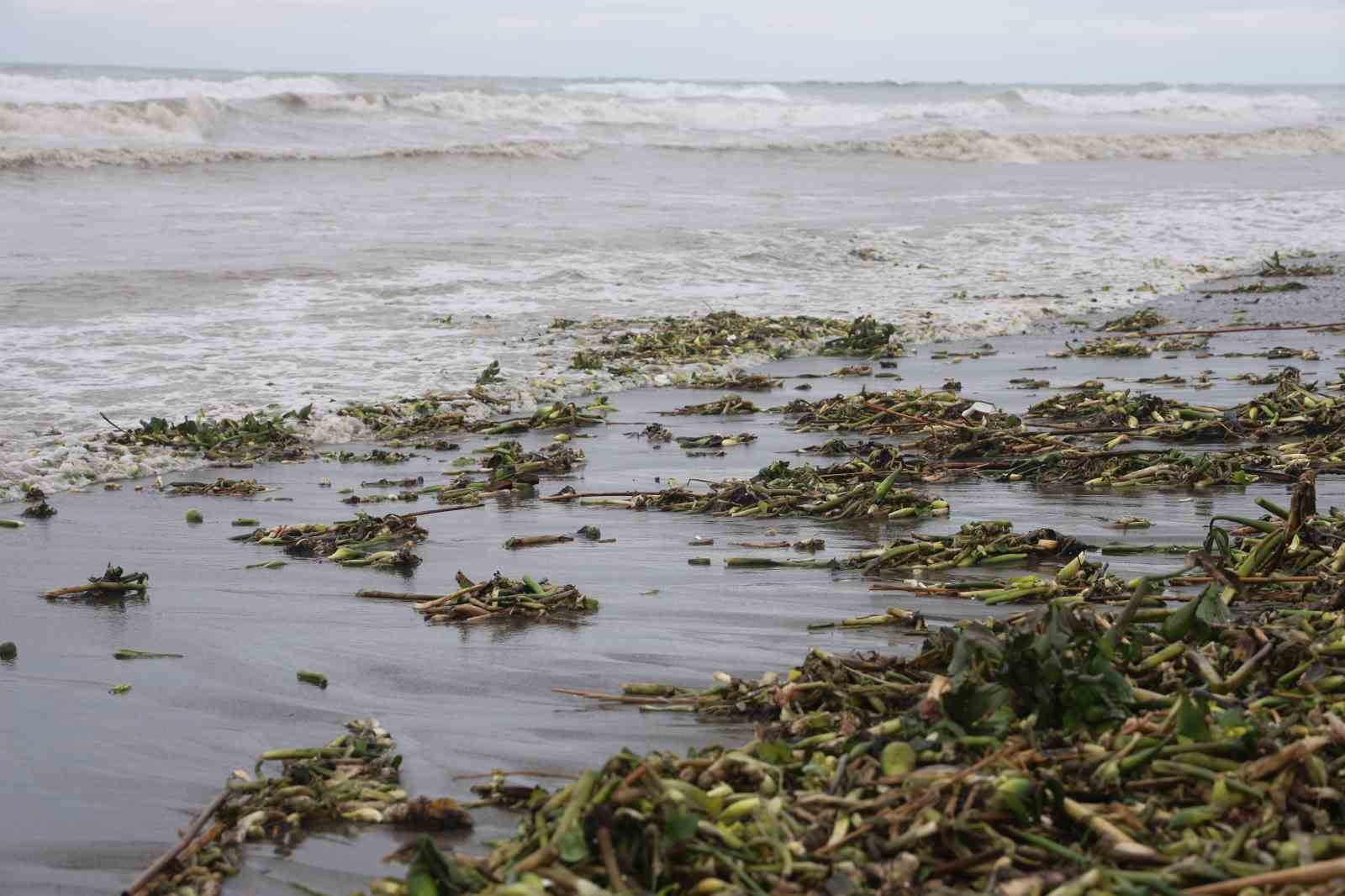 Hatay’da yaz aylarında Asi Nehrin kaplayan istilacı su sümbülleri, kentte etkili olan şiddetli fırtına ve yağışla birlikte Akdeniz’e döküldü. Denizdeki dalgaların kıyıya vurduğu su sümbülleri, Samandağ sahilini yeşile büründü.