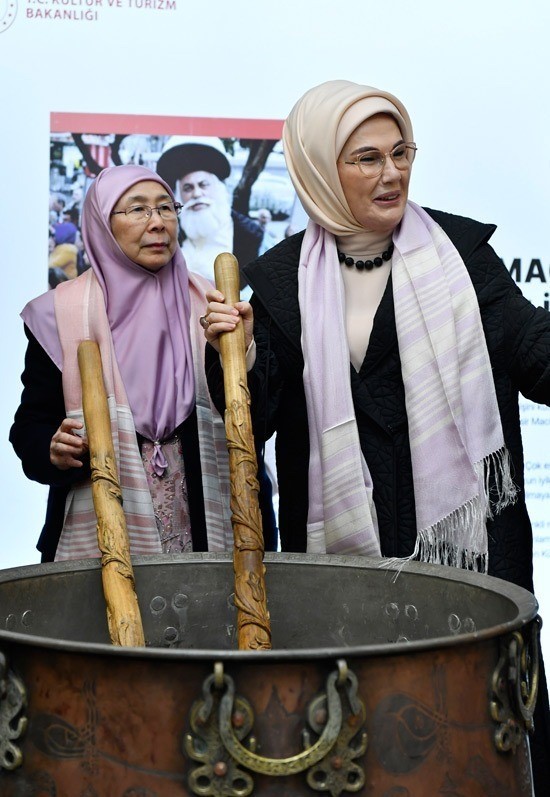 Cumhurbaşkanı Recep Tayyip Erdoğan’ın eşi Emine Erdoğan ile Malezya Başbakanı Enver İbrahim’in eşi Dr. Wan Azizah İsmail, Kültür ve Turizm Bakanlığı tarafından açılan Yaşayan Miras Okulu’nu ziyaret ederek, UNESCO mirası mesir macunu başta olmak üzere …