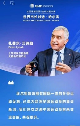Genel Sekreter Zafer Aynalı, konuya ilişkin yaptığı değerlendirmede, “Çin’in kuzeydoğusundaki Heilongjiang eyaletinin merkezi olan ve ‘Buz kenti’ diye bilinen Harbin’de ‘Küresel Belediye Başkanları Diyaloğu’na Palandöken Kayak Merkezleri Genel Müdürümüz Selim Bağrıyanık kardeşim ile birlikte katıldık. Dünya’nın dört bir yanından Çin’e gelen belediye başkanları ve yerel yönetim temsilcilerinin iştirak ettiği bu büyük buluşma dört gün sürdü. Harbin’deki Dünya zirvesinde Erzurum’un kış sporları, kış turizmi ve buz-kar ekonomisi alanındaki mevcut potansiyelimizi uluslararası ölçekte değerlendirme ve karşılaştırma imkânına da sahip olduk” dedi.