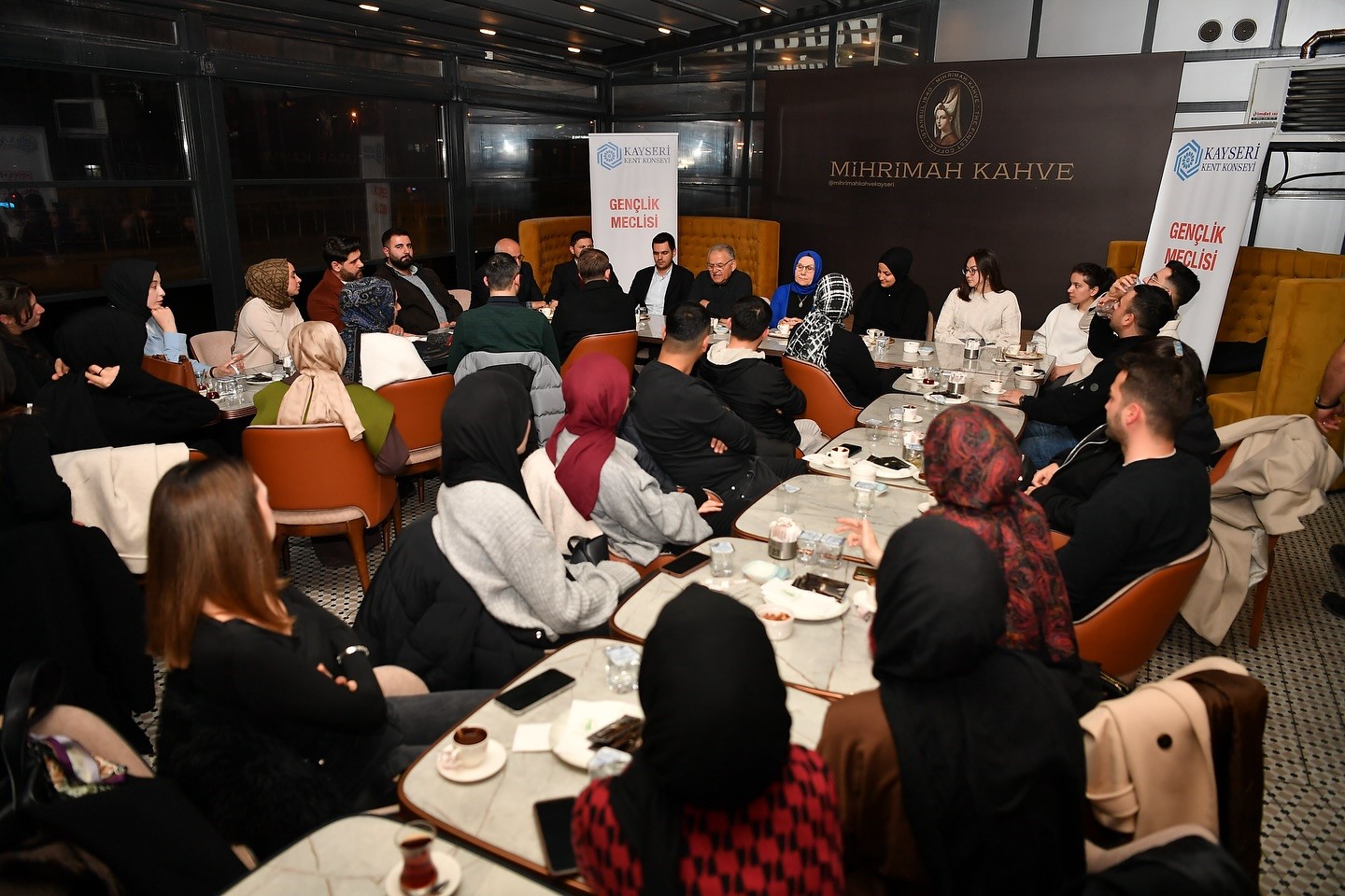 Kayseri Büyükşehir Belediye Başkanı Dr. Memduh Büyükkılıç; eşi Dr. Necmiye Büyükkılıç ile birlikte Kayseri Kent Konseyi Gençlik Meclisi üyesi gençlerle bir araya gelerek, çay ve kahve eşliğinde gençlerle sohbet etti.
