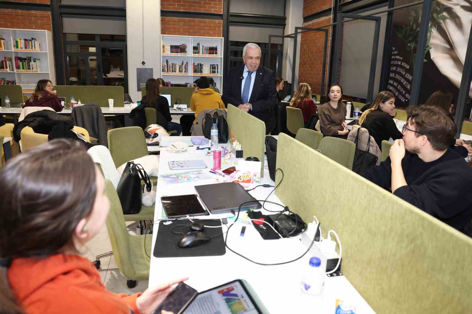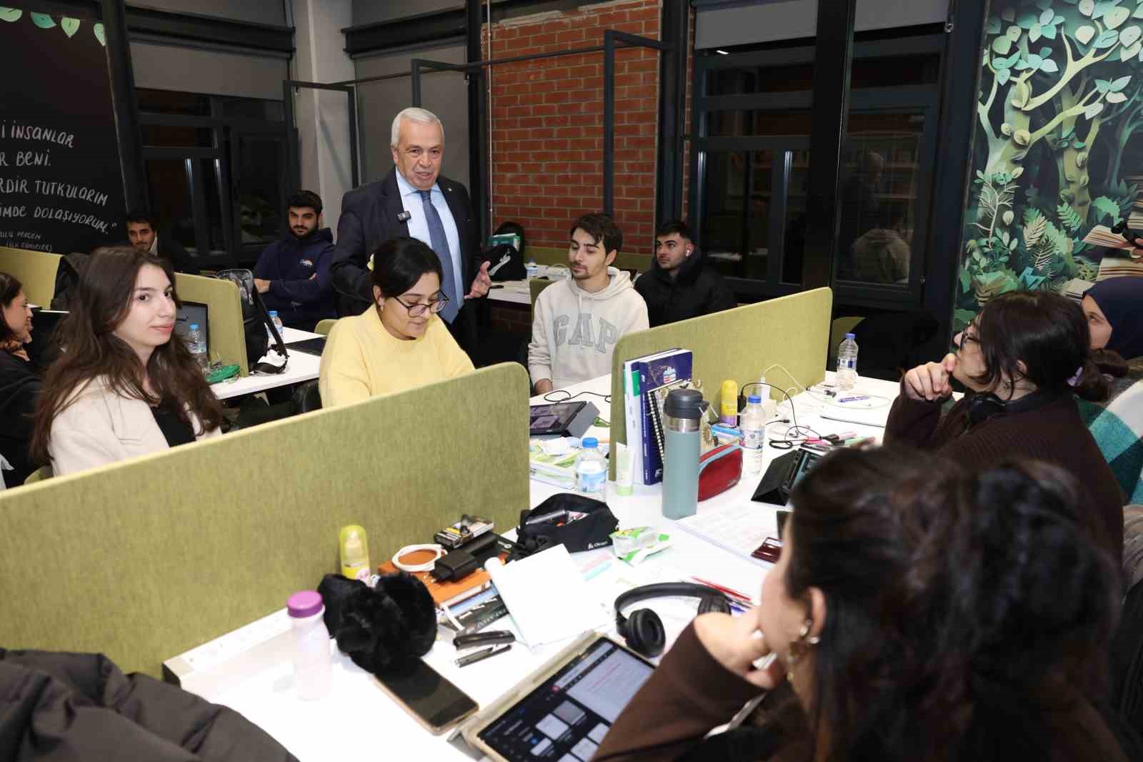 Finallere hazırlanan üniversite öğrencileriyle Koza Kütüphane’de bir araya gelen Nilüfer Belediye Başkanı Şadi Özdemir, gençlerin taleplerini dinleyerek sınav dönemine yönelik destekleri yerinde değerlendirdi.