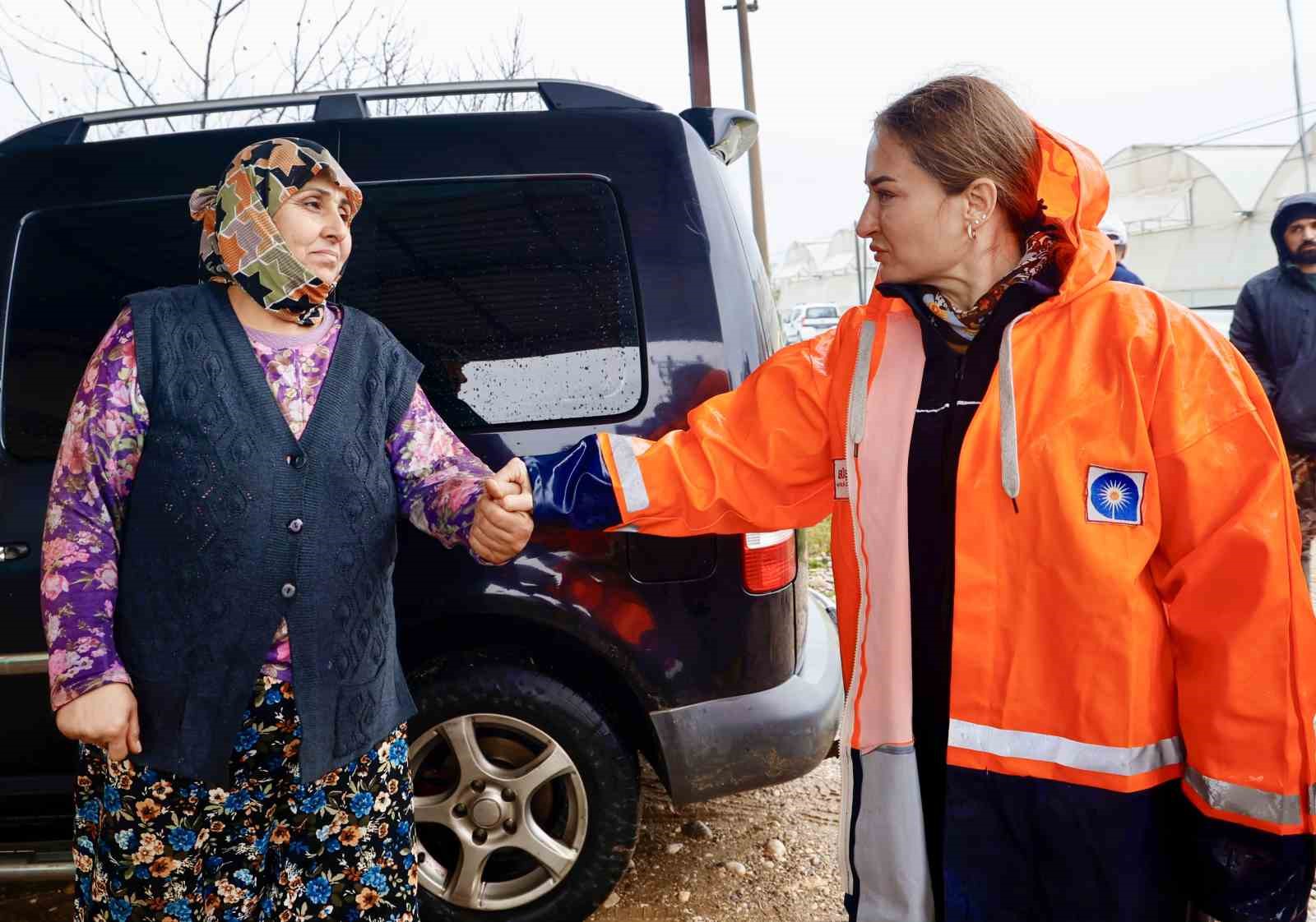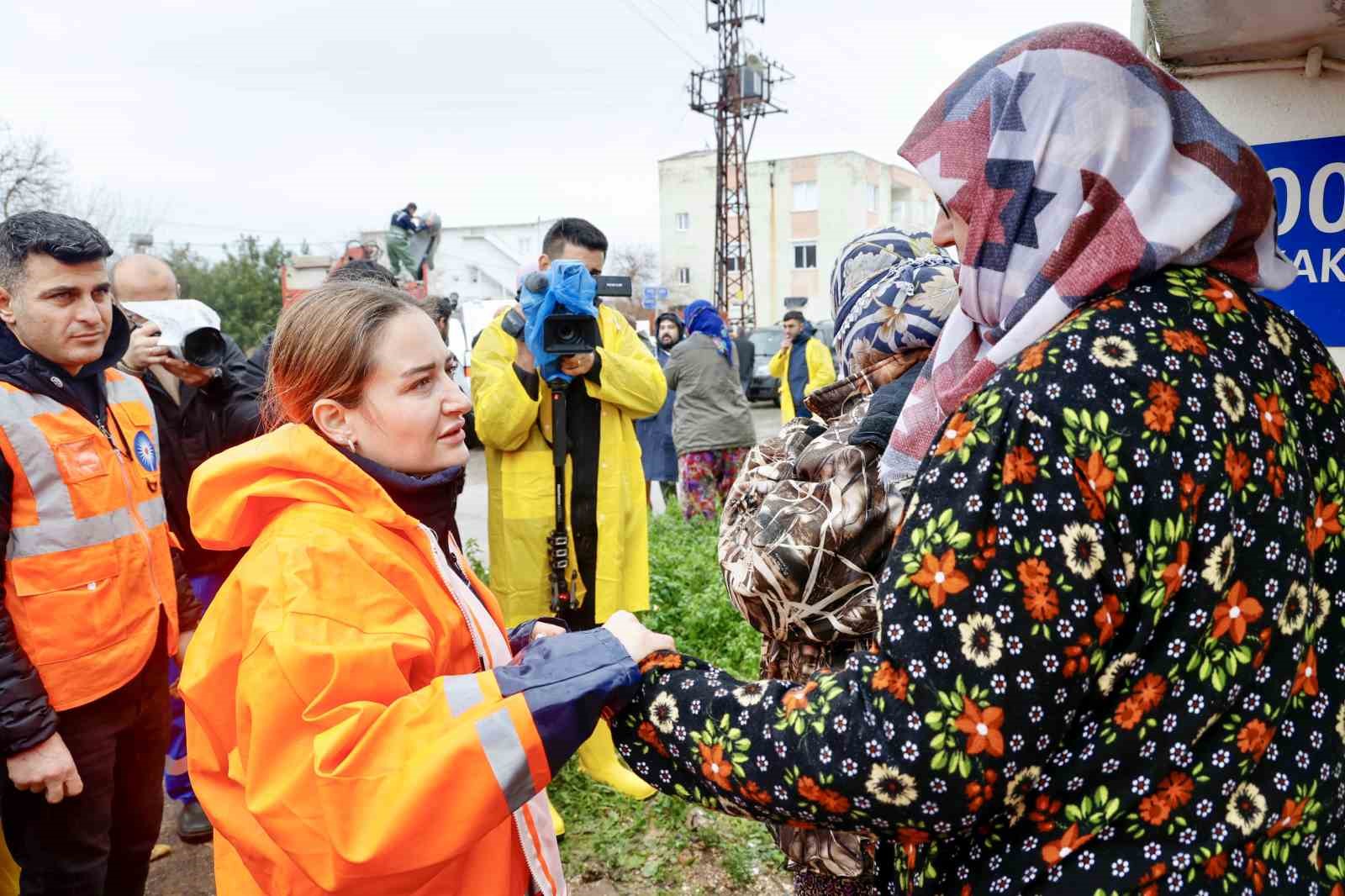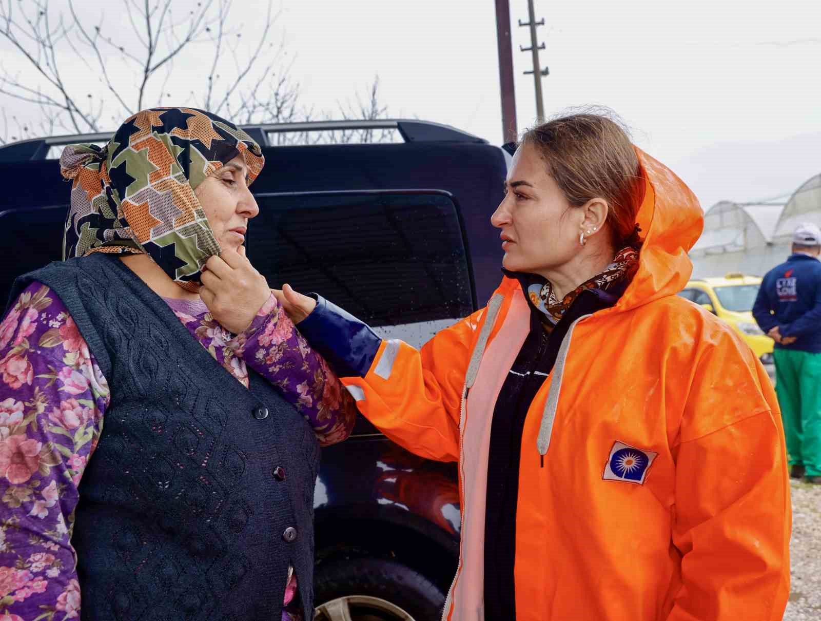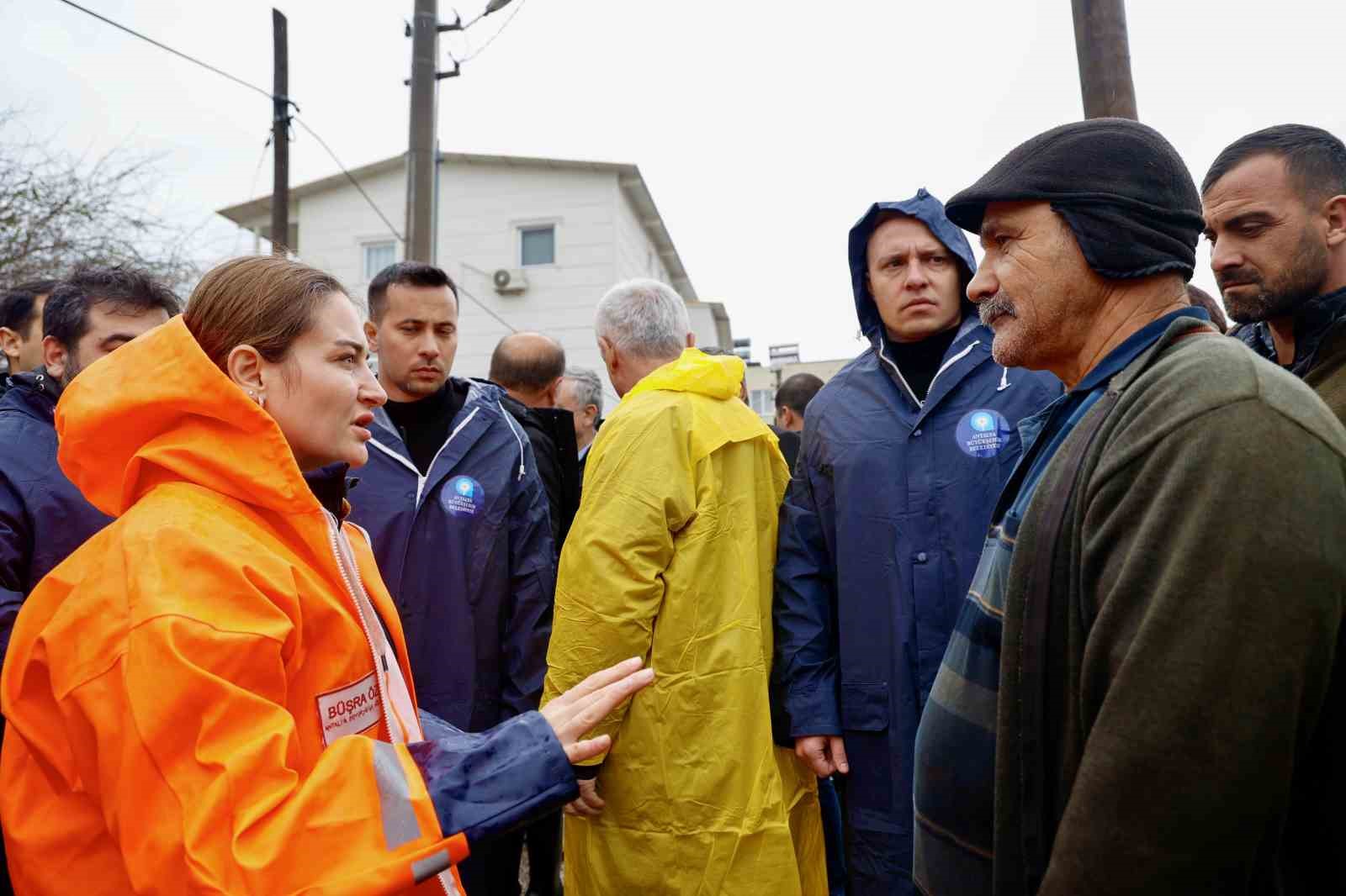 Büyükşehir Belediye Başkan Vekili Özdemir, daha sonra Cumhuriyet Halk Partisi (CHP) Antalya İl Başkanı Nail Kamacı, milletvekili Mustafa Erdem ile birlikte Aksu bölgesinde şiddetli yağıştan etkilenen yerlerde incelemerlede bulundu. Karaçallı Mahallesi’nde vatandaşlara geçmiş olsun diyen Büşra Özdemir, Büyükşehir Belediyesi’nin gereken desteği yapacağını kaydetti. Büyükşehir Belediyesi itfaiyesi evleri su altında kalan vatandaşları botlarla kurtarırken, gün boyu motopomp ve dalgıç pompalarla vatandaşların evlerinden su tahliyesi gerçekleştirdi.