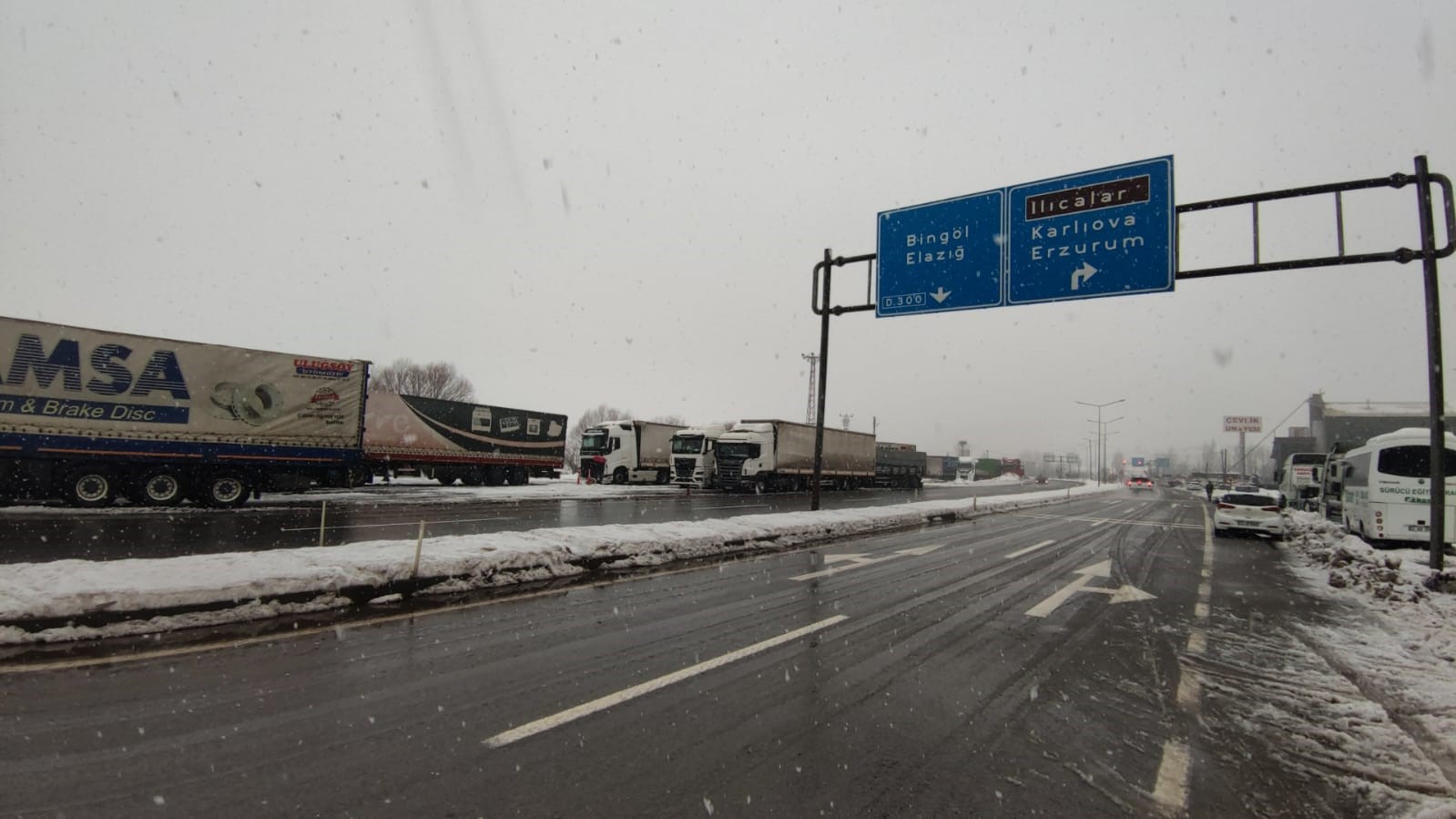 Öte yandan yoğun kar yağışı ve tipi nedeniyle Bingöl-Erzurum kara yolu henüz ulaşıma açılamadı. Özellikle Kervansaray mevkiinde çok sayıda tır ve ağır tonajlı aracın yolun açılmasını beklediği, bölgede uzun araç kuyruklarının oluştuğu gözlemlendi. Karayolları ekiplerinin yolun yeniden ulaşıma açılması için kar küreme ve tuzlama çalışmalarını aralıksız sürdürdüğü bildirildi.
