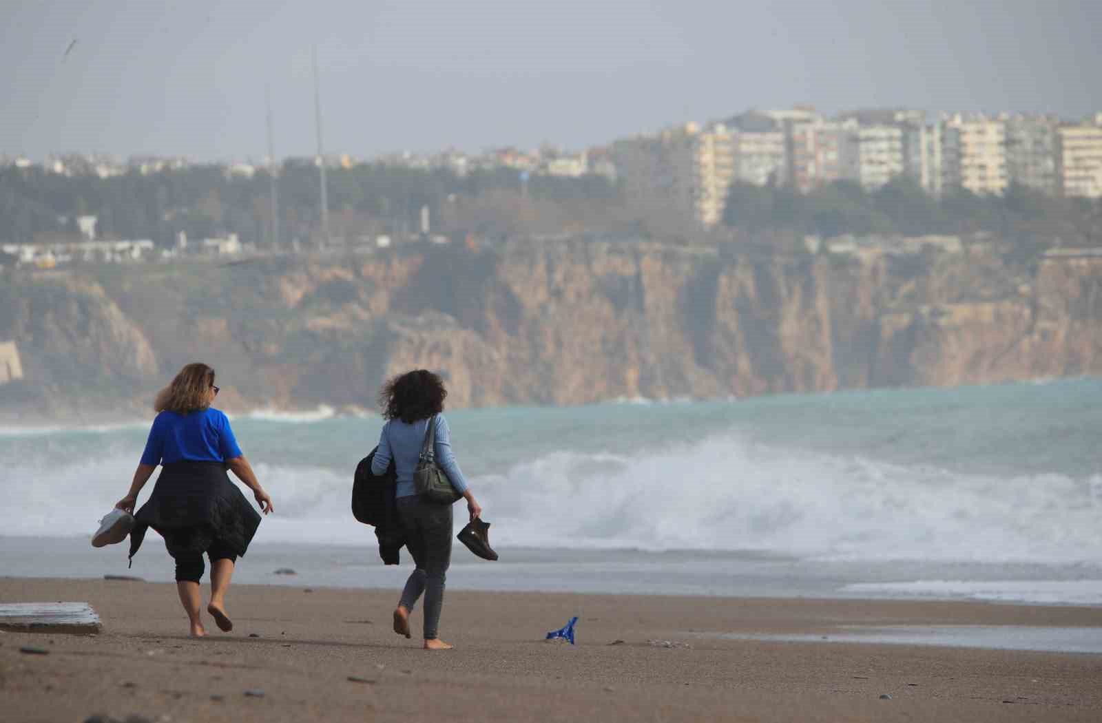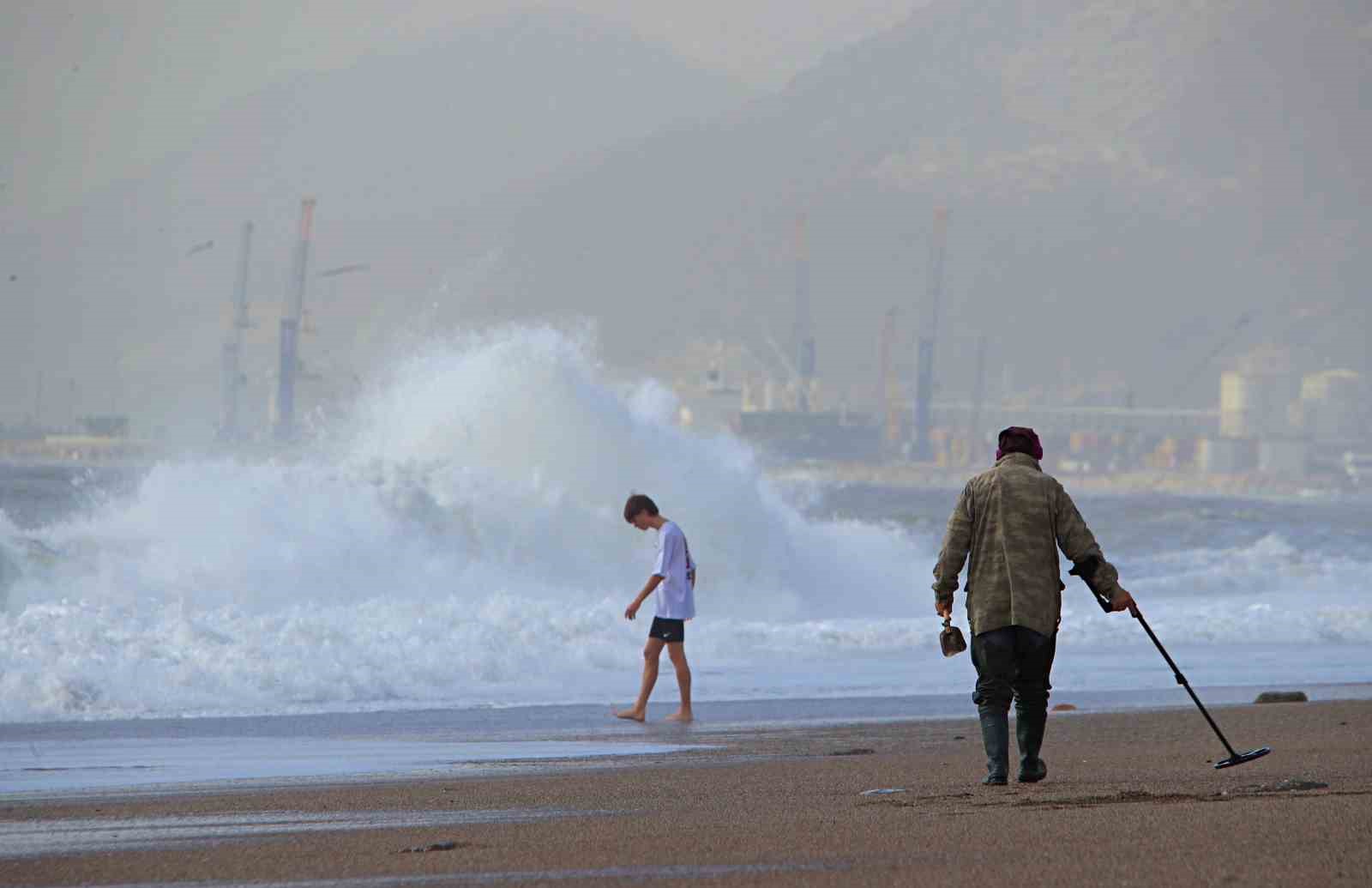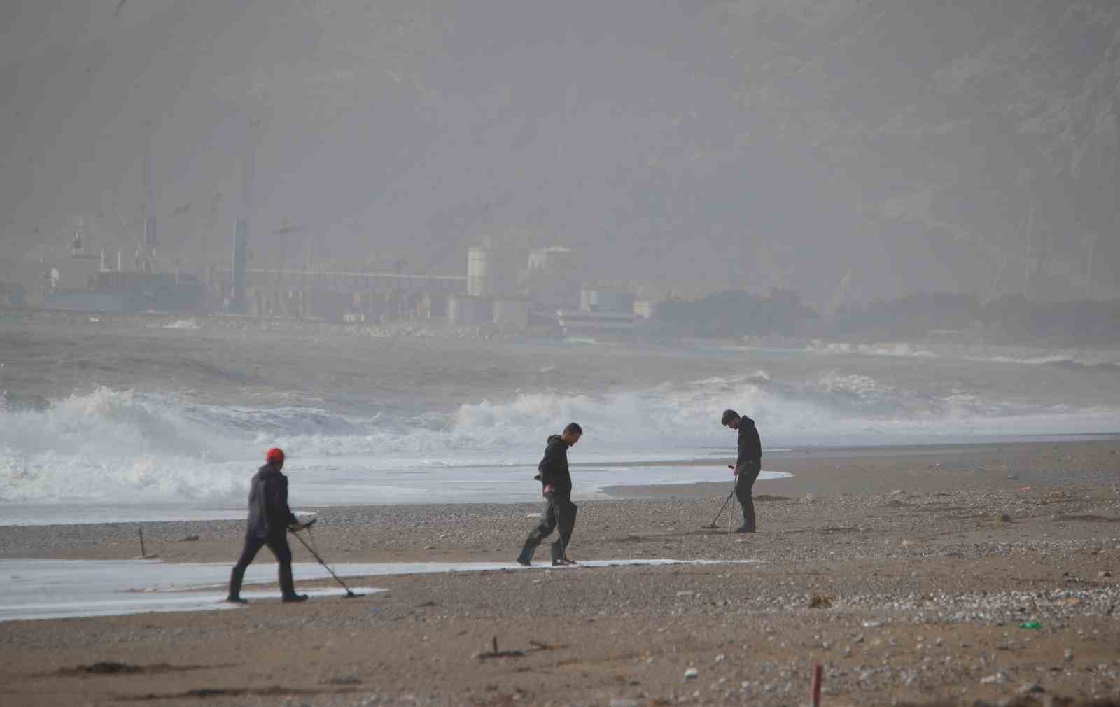 Antalya’da geçtiğimiz hafta cuma gününden bu yana aralıklarla etkili olan sağanak yağış ve fırtına yerini güneşli havaya bıraktı. Bir hafta sonra ilk kez güneşin açtığı kentte vatandaşlar ve yabancı turistler sahile akın ederken, define avcıları ise ellerinde dedektörler ile dalgaların sahile getirdiği kıymetli eşyaları aradı.