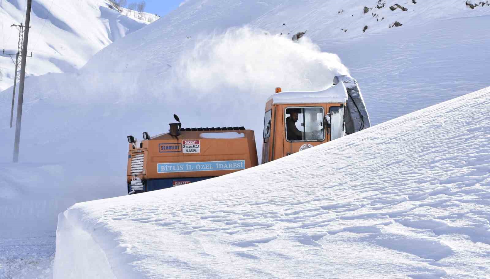 Bitlis İl Özel İdaresi ekipleri, yoğun kar yağışı nedeniyle kapanan ve yer yer 3 metreyi bulan köy yollarında 7 gün 24 saat esasına göre karla mücadele çalışmalarını sürdürüyor.