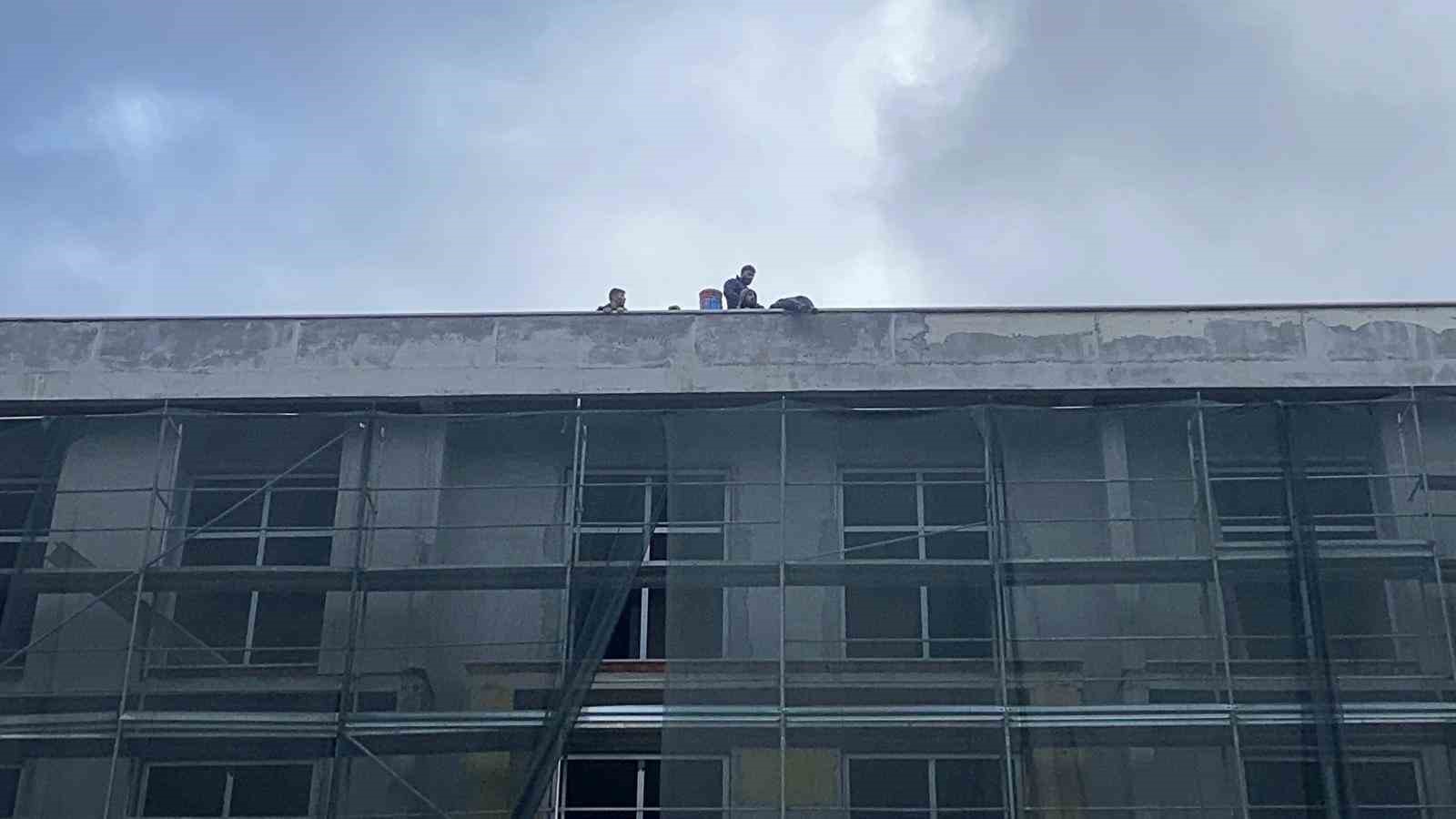 Bolu’da yaklaşık 1.5 yıldır devam eden uygulama okulu inşaatında çalışan 8 işçi, 3 aydır maaşlarını alamadıklarını ileri sürerek inşaatın çatısında eylem yaptı.