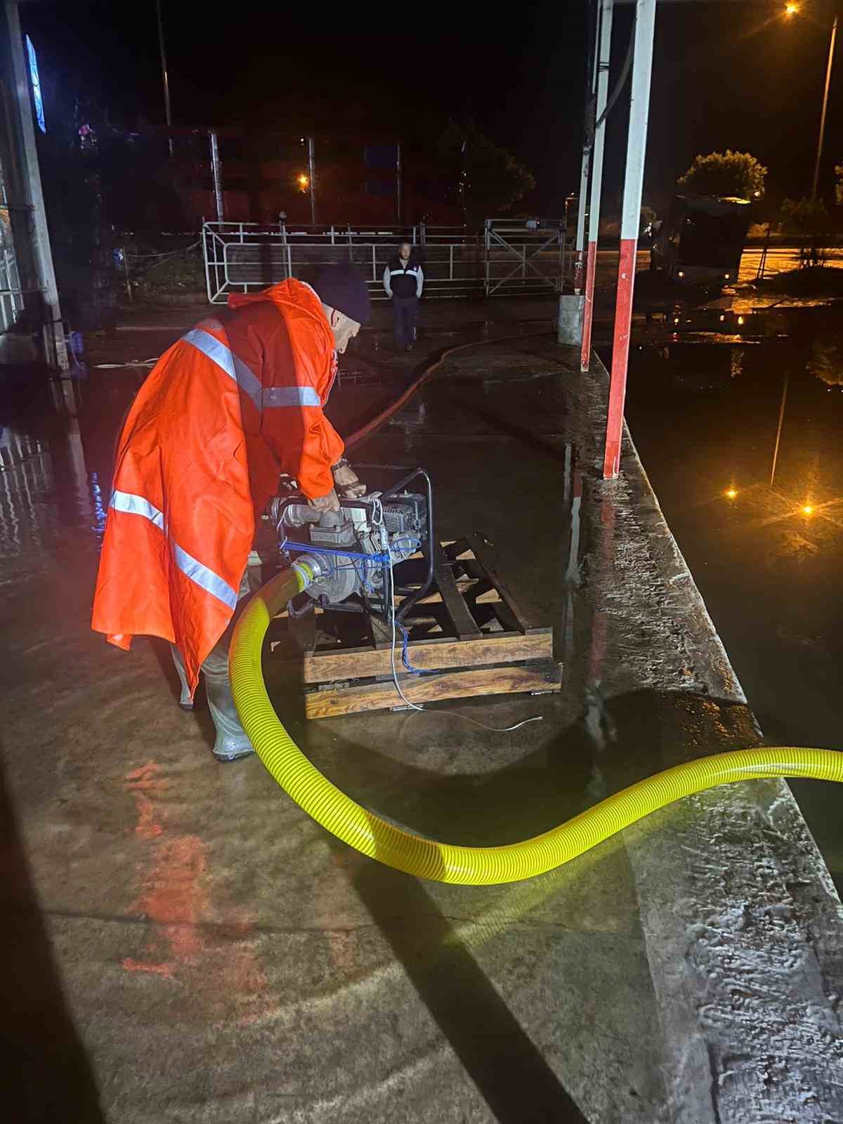 Şiddetli yağıştan en çok etkilenen ilçelerden biri olan Kumluca’da Büyükşehir ekipleri gece boyunca yoğun bir mesai yaptı. Kumluca’nın Kum ve Toptaş Mahallesi’nde ekipler sular altında kalan noktalarda vatandaşın yardımına koştu. Kumluca’da bir ahırda mahsur kalan hayvanlar, Büyükşehir Belediyesi ekiplerinin titiz çalışmasıyla kurtarıldı. Yağmur ile birlikte kanallarda biriken ağaç dalları kepçelerde kaldırılarak, su akışı sağlandı. Yağış nedeniyle bozulan yollarda bakım ve onarım çalışmaları gerçekleştirilirken, ASAT ekipleri de rögarların açık tutulması için yoğun mesai yaptı.