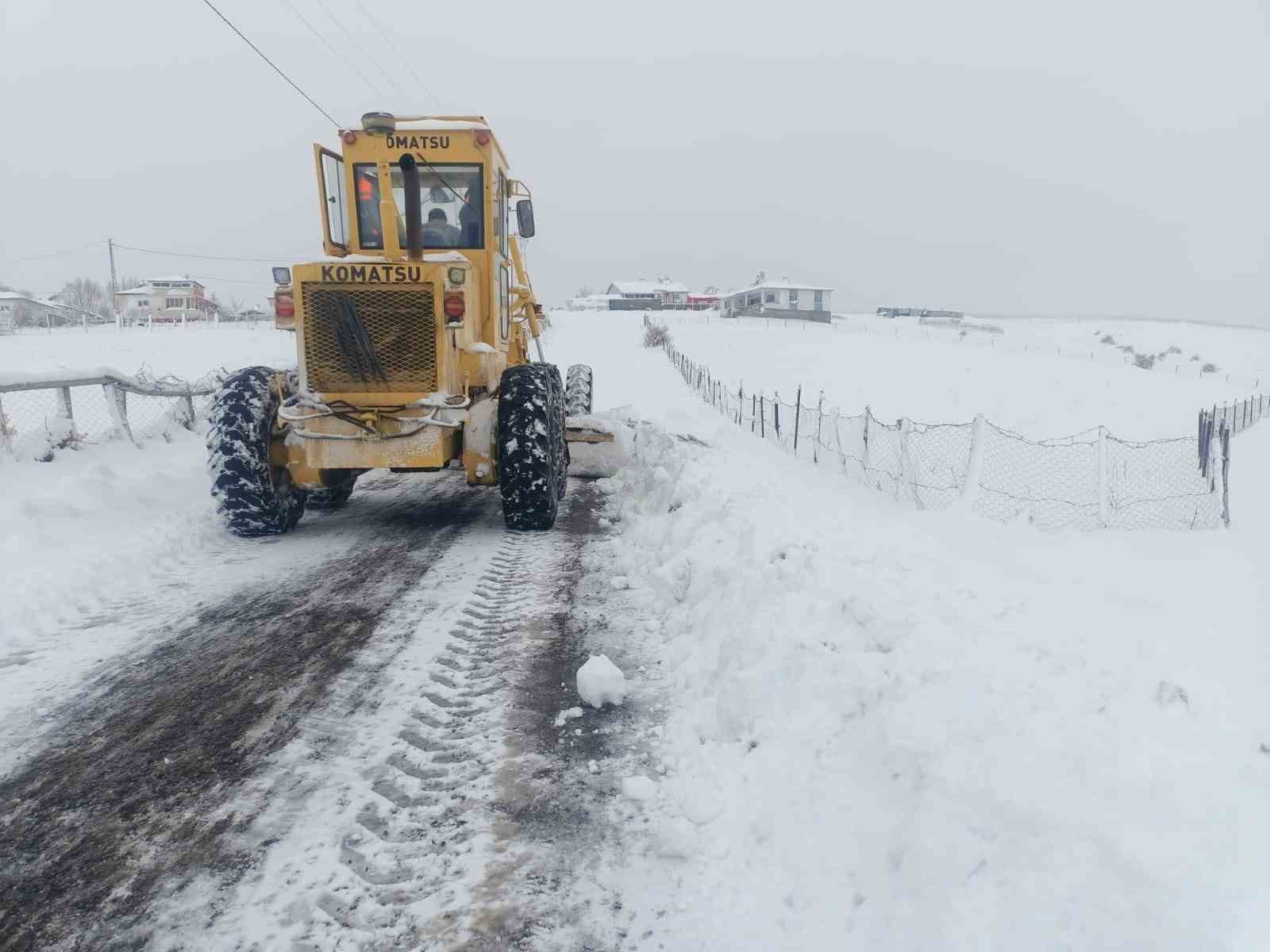 148 personel ve 85 araçla sahada görev yapan kırsal ekipleri; greyder, kar küreme, yükleyici ve tuzlama araçlarıyla özellikle yüksek kesimler, ulaşımı zor bölgeler ve kritik güzergâhlarda 7 gün 24 saat esasına göre çalışmalarını sürdürüyor.