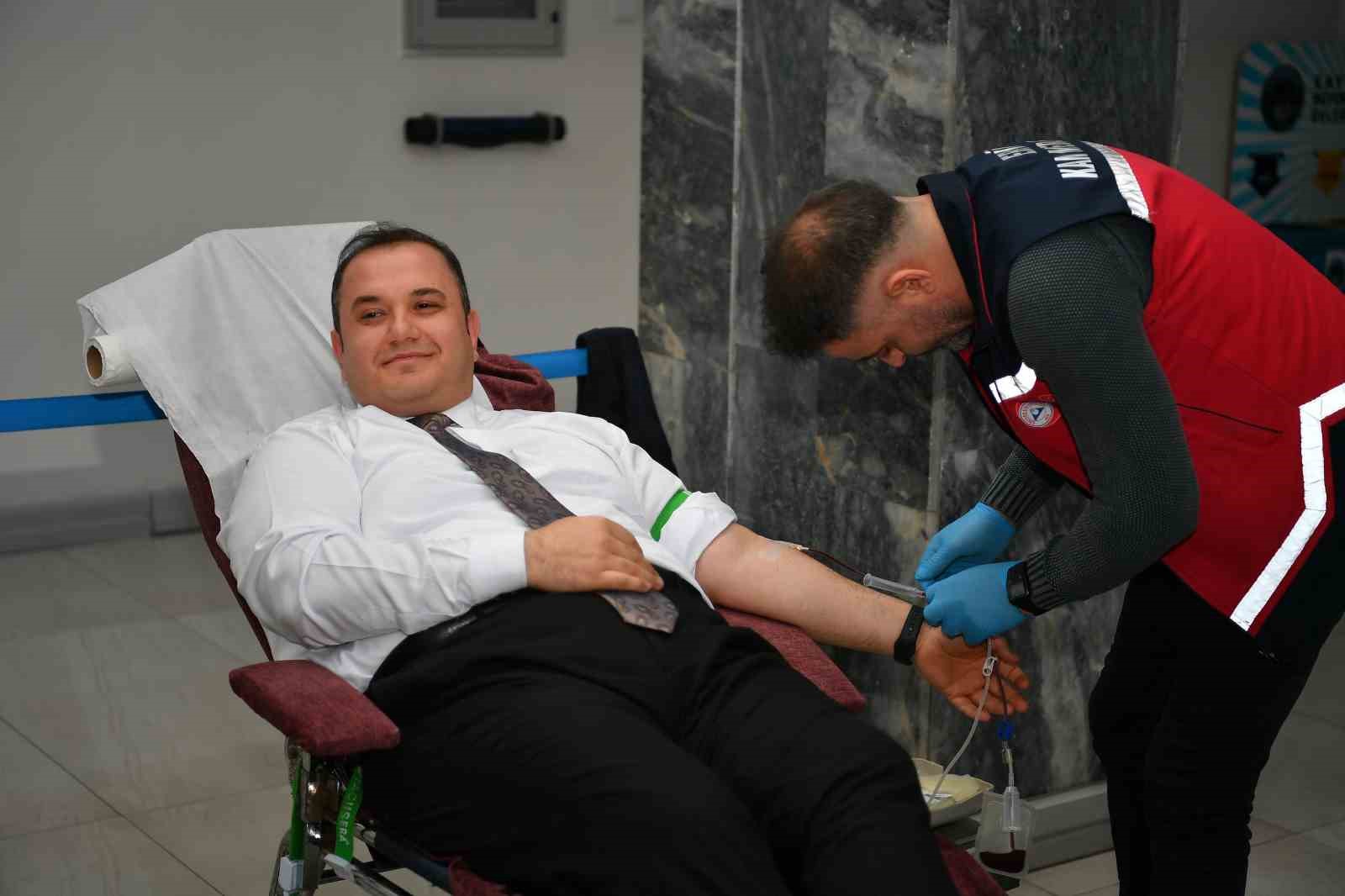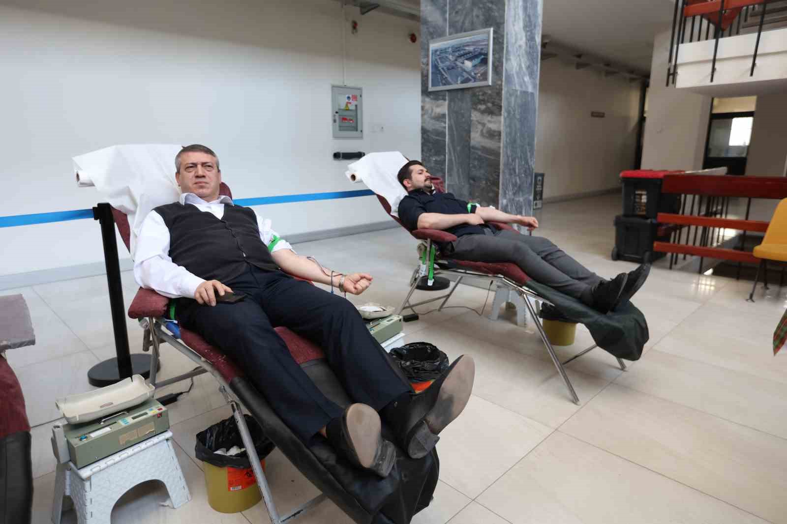 Kayseri Büyükşehir Belediyesi ve Erciyes Üniversitesi (ERÜ) Kan Merkezi iş birliği ile Büyükşehir Belediyesi Hizmet Binası’nda başlatılan kan bağışı kampanyasında, Büyükşehir Belediyesi bürokratları ve belediye personeli kan bağışında bulundu.