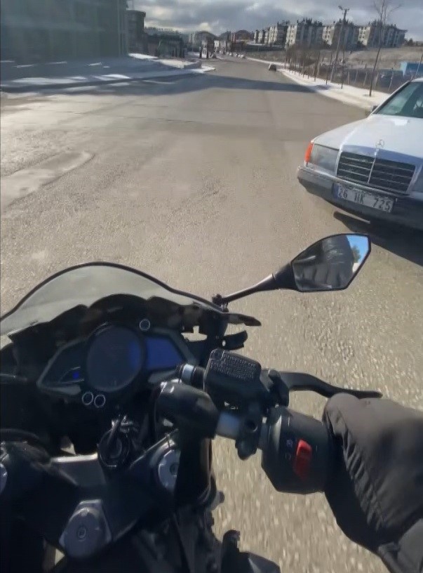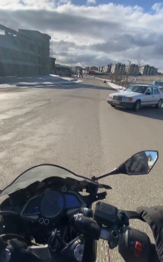 Eskişehir’de ara sokaktan caddeye aniden çıkan araca çarpmaktan yaptığı hamle ile kıl payı kurtulan motosiklet sürücünün yaşadıkları kask kamerasına yansıdı. Motosiklet sürücüsü, araç sürücüsüne, “Yaşına hürmetim var, ama kurtarmasam ne olacaktı biliyorsun değil mi? Sana hiçbir şey olmayacaktı, 2 tane sabinin canını alacaktın” dedi.