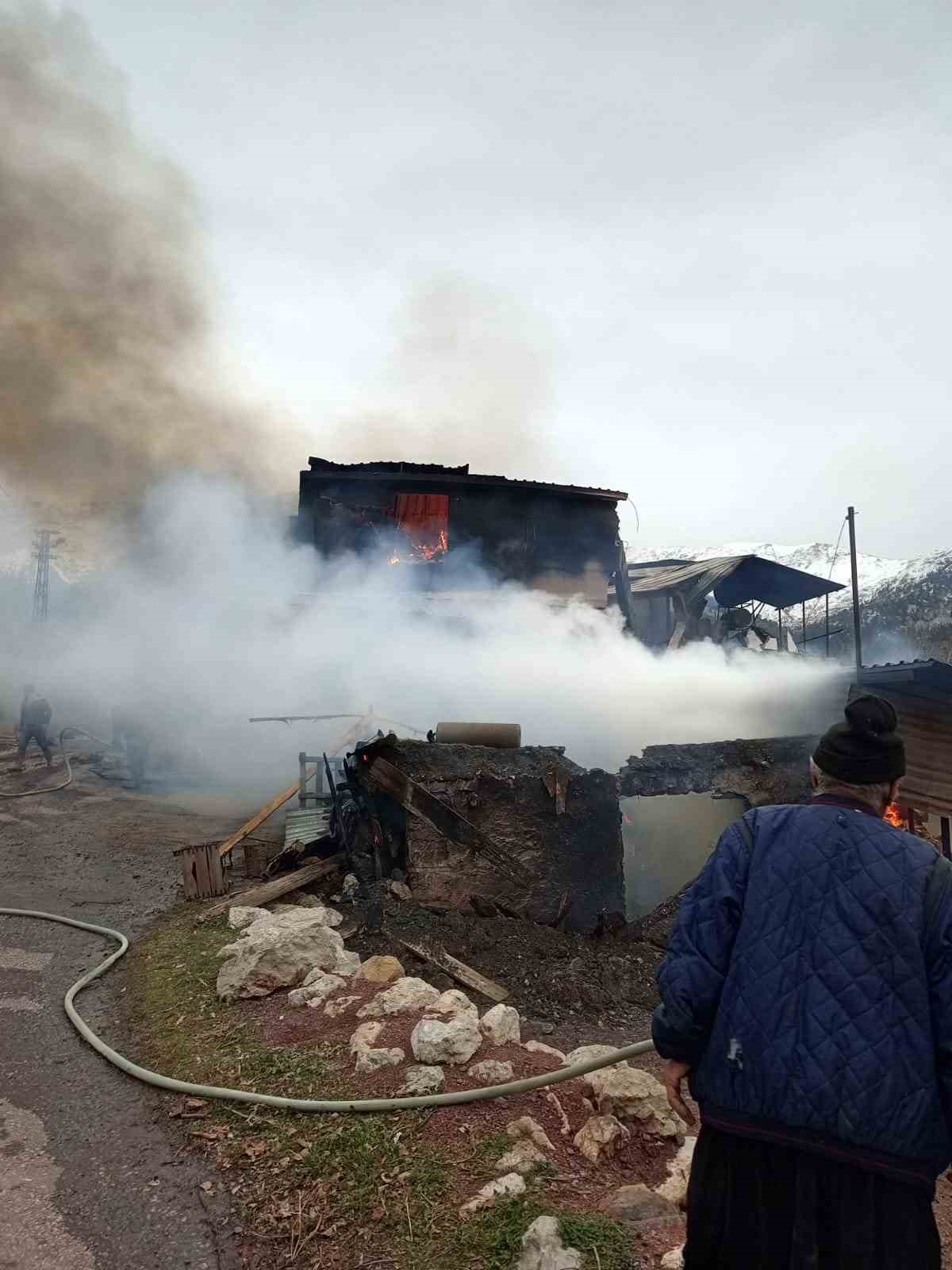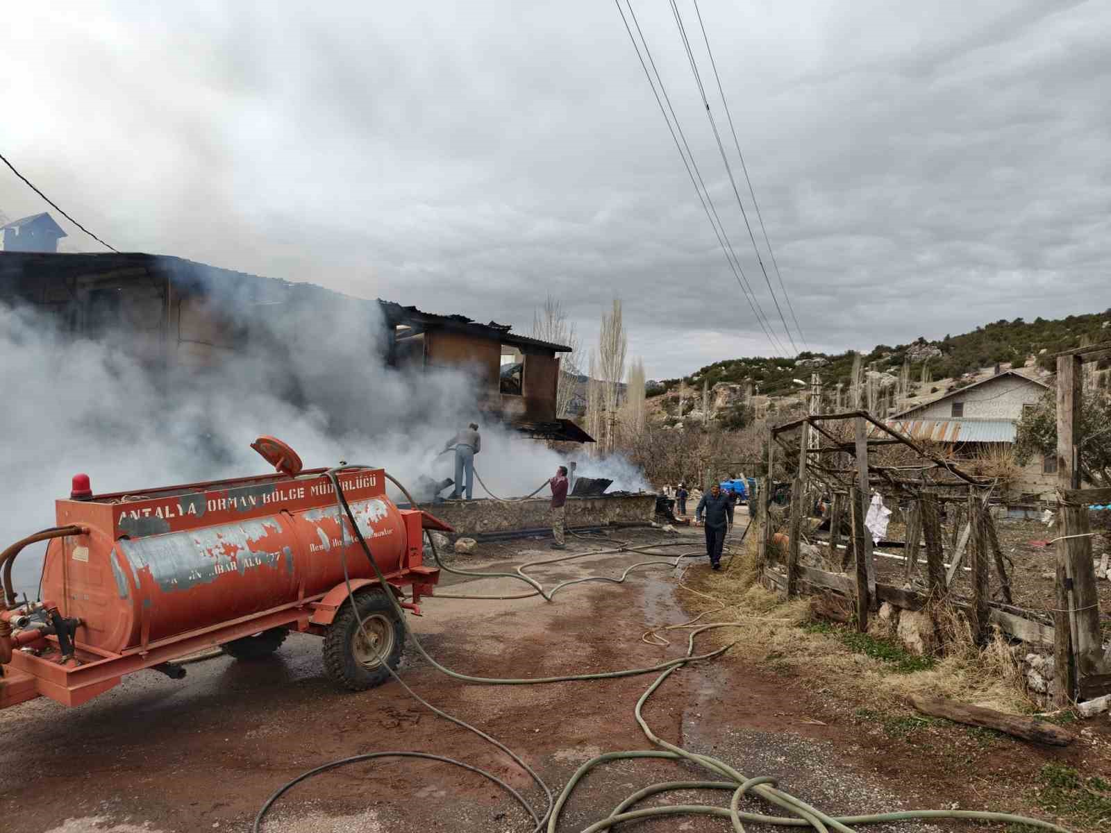 Antalya’nın Gündoğmuş ilçesinde bir evde çıkan yangında 3 büyükbaş hayvan telef olurken, dumandan etkilenen 1 kişi hastaneye götürüldü.