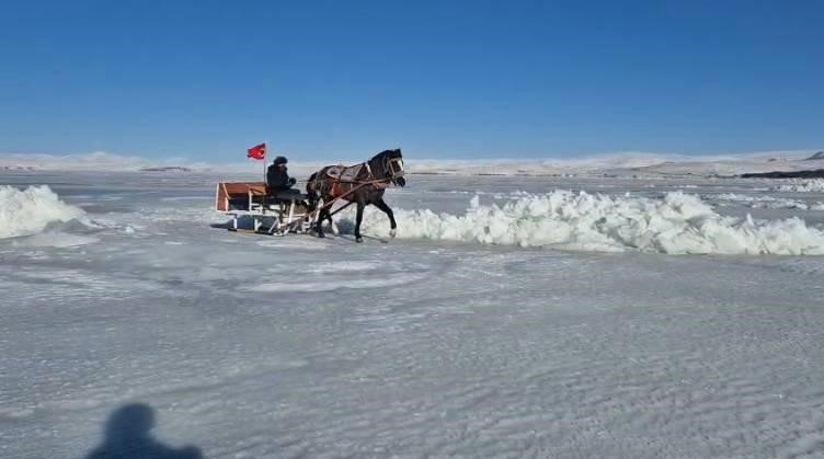 Gölün büyük bölümüne ilk kez çıkan atlı kızaklar, son kontrollerini yaparak buz tabakasının güvenli seviyeye ulaştığını teyit etti. Bu gelişmeyle birlikte kış turizminin simgelerinden biri olan atlı kızak keyfi yeniden başladı.