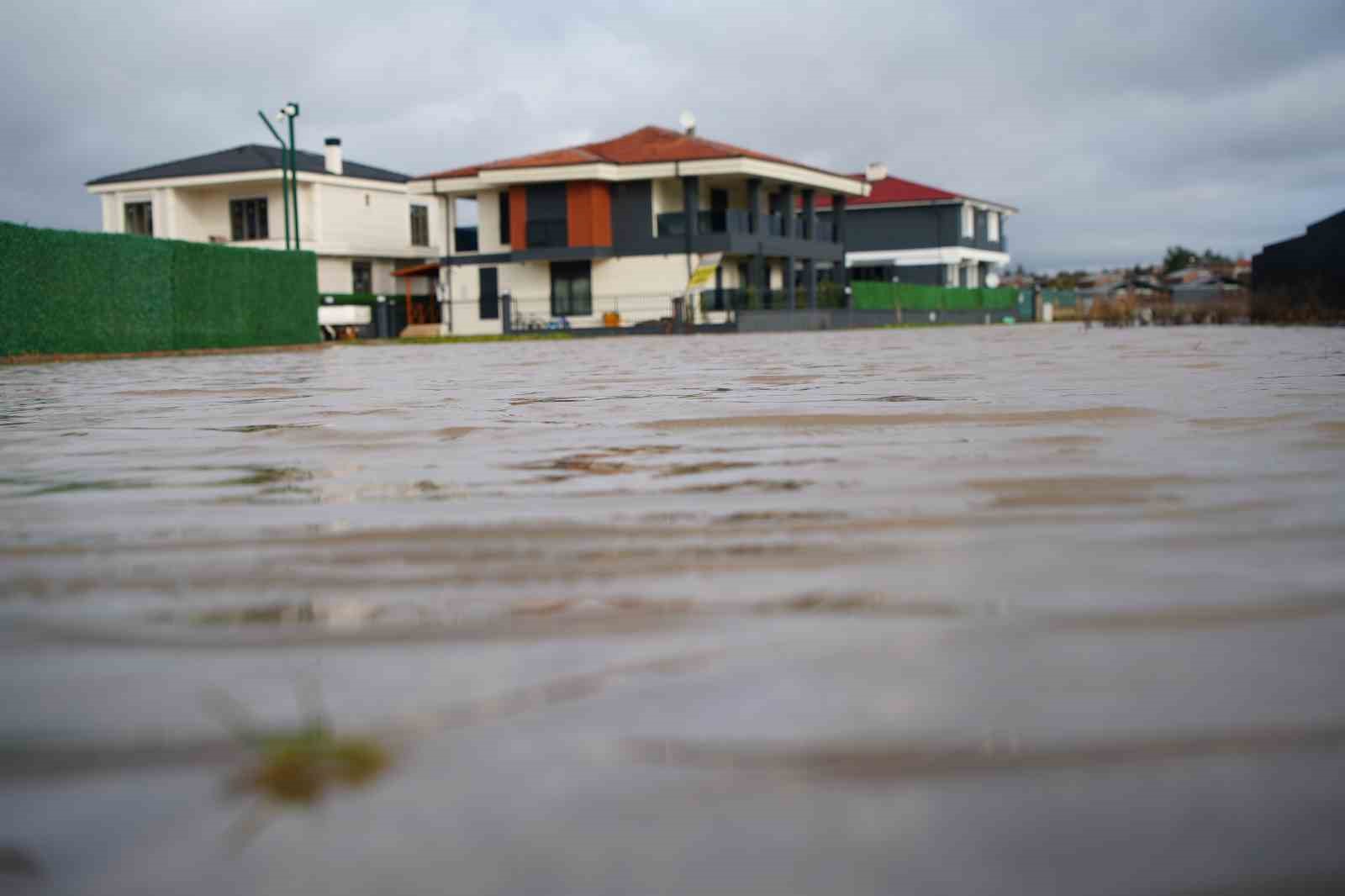 Edirne’de etkili olan sağanak yağmurun ardından lüks villaların bulunduğu bölgede su baskını yaşandı. Villalara giden yol sular altında kaldı.