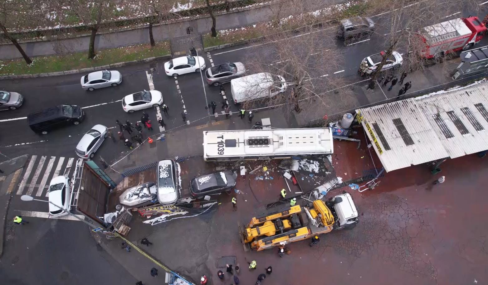 Ahmet Şen isimli esnaf, “Ben burda esnafın. O sırada müşterimiz vardı. Büyük bir gürültü koptu. Hızlı bir şekilde geldi. Garajın üzerine çıktı. Otobüsün içinde yaklaşık 20-25 yolcu vardı. Sürücüyle birlikte yolcuları tahliye ettik.Yolcuları indirdik. Yaralanan yoktu. Büyük bir ihtimalle gaz pedalı takılı kaldı. Çocuk ve kadınları güvenli bir şekilde indirdik. Sonra polise bildirdik” diye konuştu.