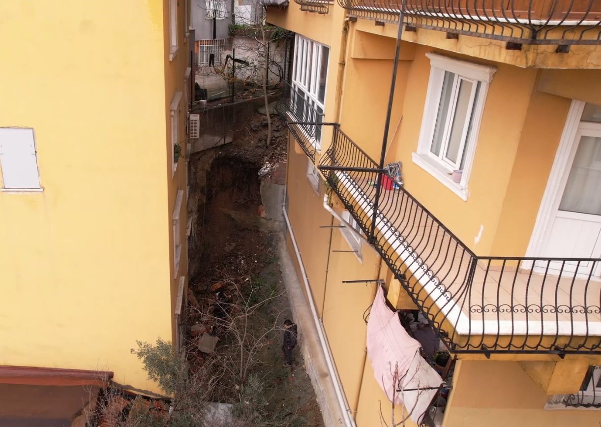 İstanbul’un Eyüpsultan ilçesinde 5 katlı binanın bitişiğindeki istinat duvarı yağışın da etkisiyle çökerken, duvardan düşen parçalar giriş katta bulunan bir dairede hasara yol açtı. Öte yandan çöken istinat duvarı havadan görüntülendi.