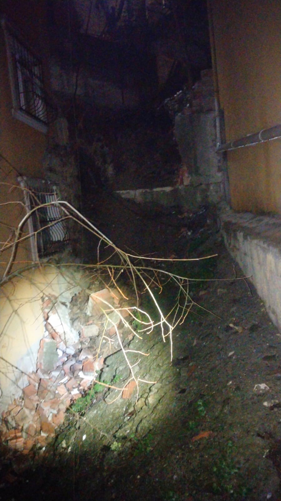 Eyüpsultan Merkez Mahallesi’ndeki 5 katlı bir binanın bitişiğinde bulunan istinat duvarı, yağışın da etkisiyle cumartesi günü çöktü. Duvarın çökmesiyle dağılan moloz ve tuğla parçaları, yakındaki binanın giriş katında bulunan daireye zarar verdi. 1 buçuk yıl önce daireye taşınan Özkan, istinat duvarıyla ilgili belediyeye başvuru yaptığını, diğer bina yöneticisi ve apartman sakinlerine de önlem alınması yönünde uyarılarda bulunduğunu öne sürdü. Duvarın, apartmanın çevresindeki diğer binaların borularından akan su ve son zamanlarda yapılan inşaat çalışmalarının da etkisiyle çöktüğü iddia edildi. Öte yandan, çöken istinat duvarı dronla görüntülendi.